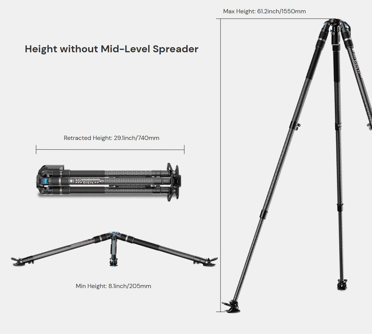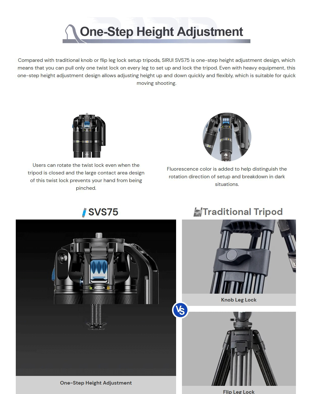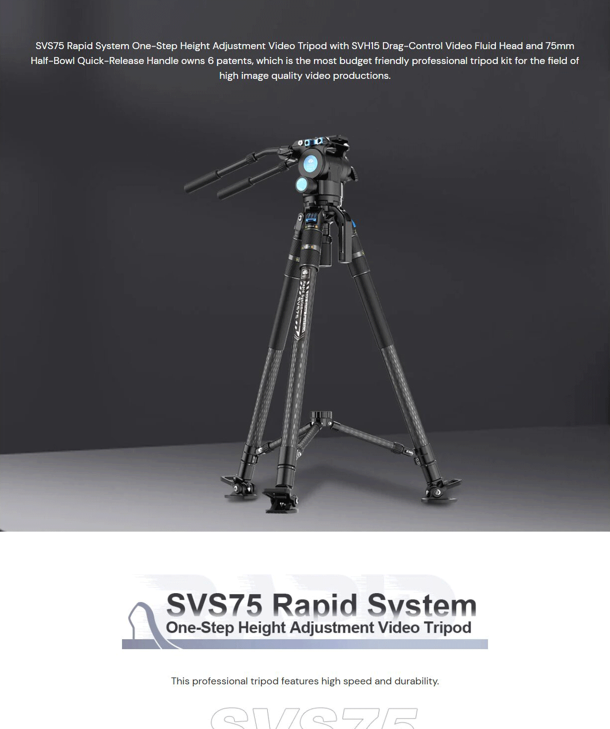 SIRUI SVS75 SVH15 Carbon Fiber One-Step Outdoor Camera Video Tripod Fluid Head