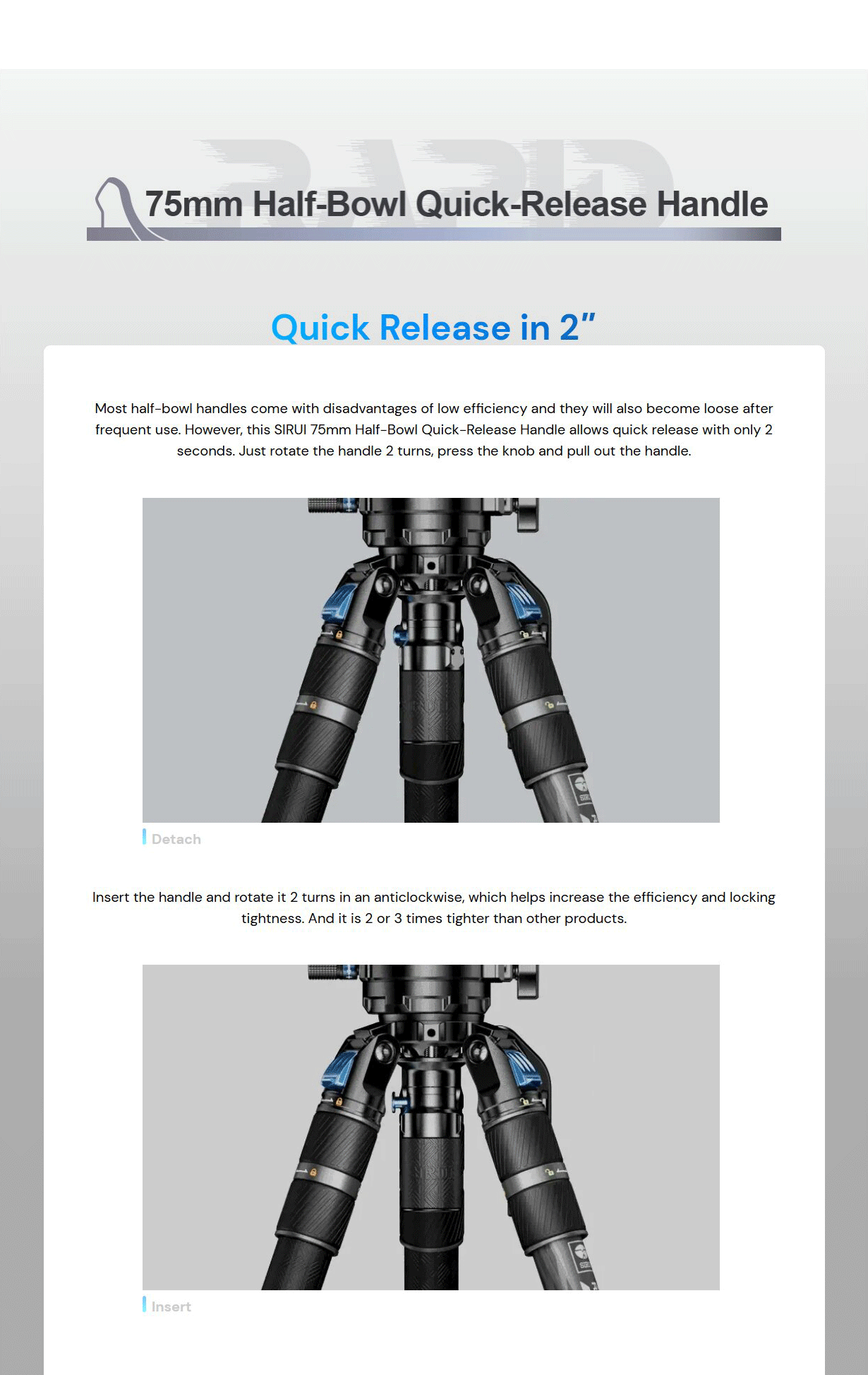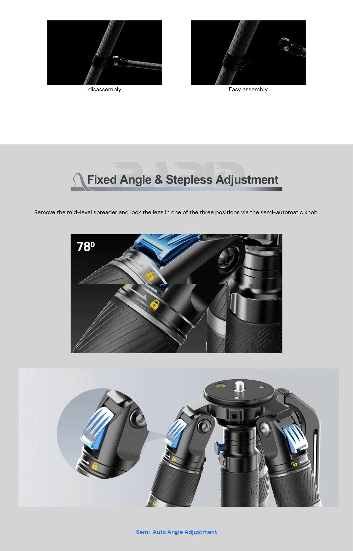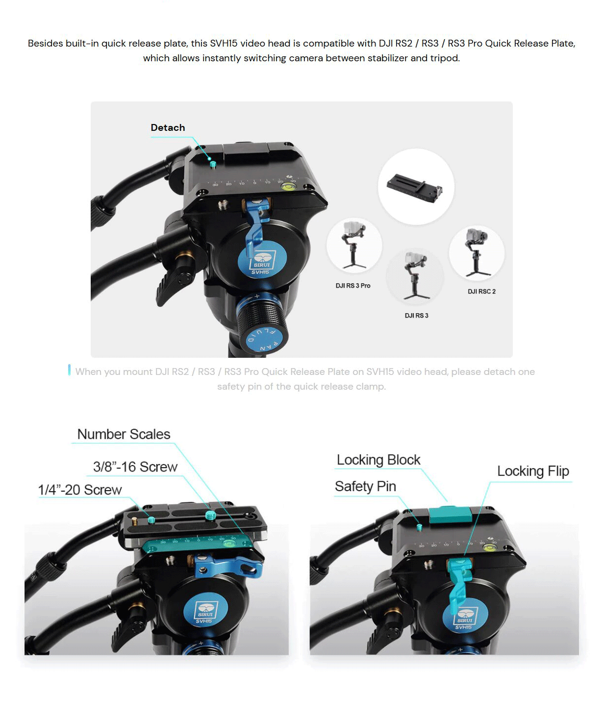 SIRUI SVS75 SVH15 Carbon Fiber One-Step Outdoor Camera Video Tripod Fluid Head