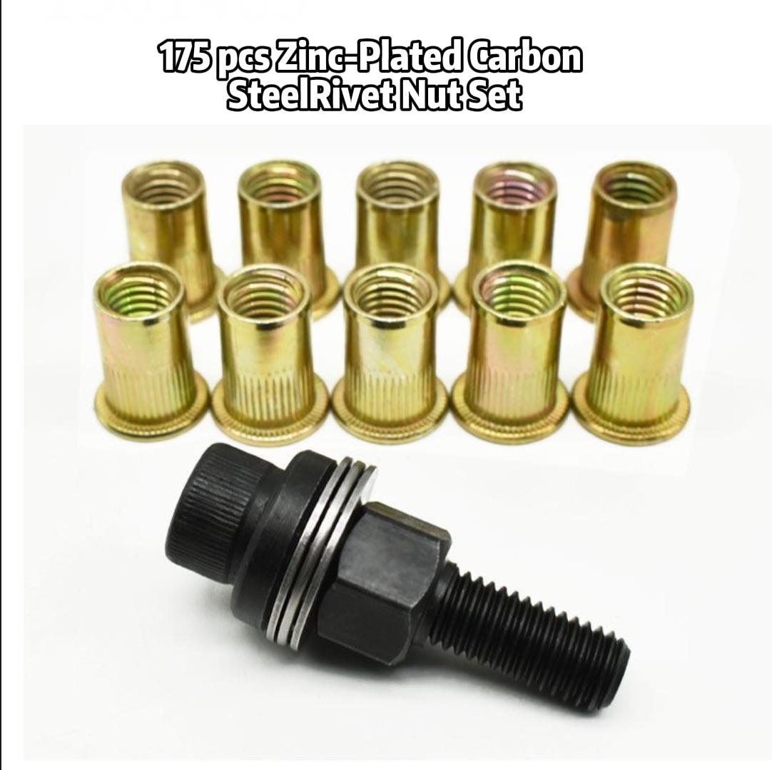 What’s Included: 175-piece set of rivet nuts in 6 essential sizes: