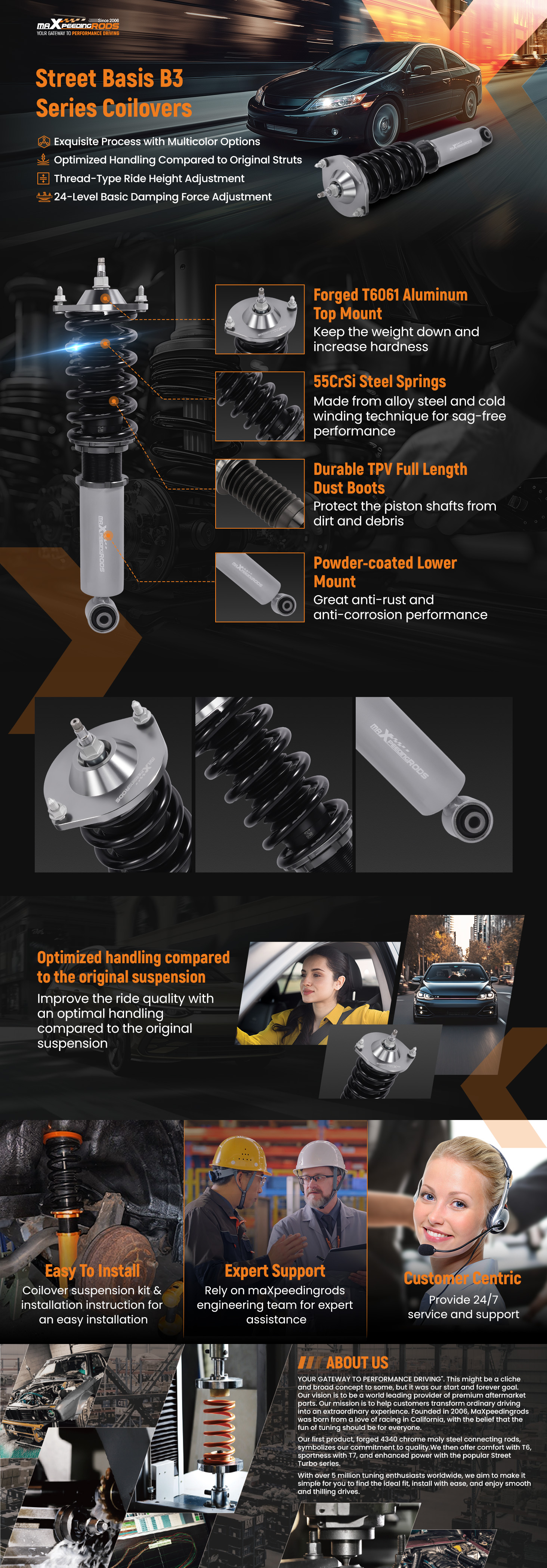 5. We suggest regular maintenance for the coil-over, spray with some WD40 every 3-4 months will keep it smooth and clean, which helps to extend the lifetime.