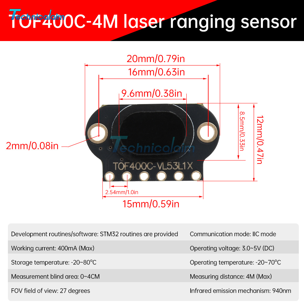 TOF050C 400C Laser Ranging Sensor Module ToF Time-of-Flight Distance IIC Output