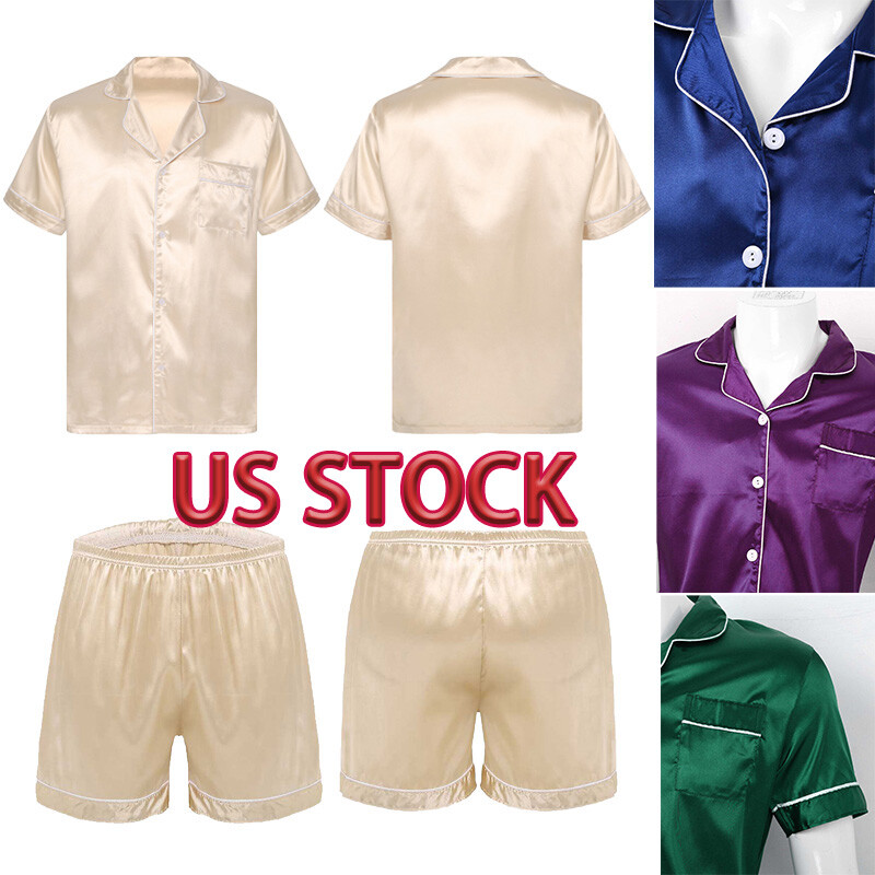 Unisex V Neck Short Sleeve Sides Split Nightwear.