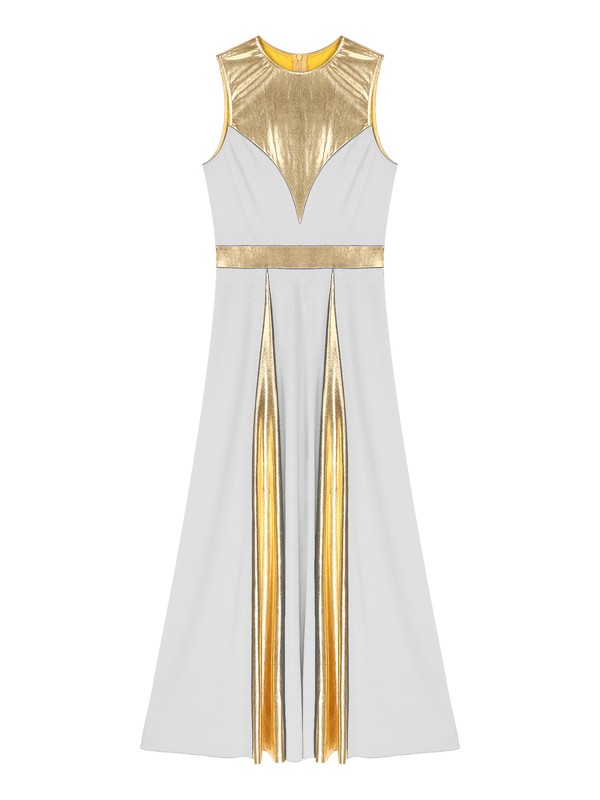 Praise dance dress for women, metallic shiny color block design brightens up any performance.