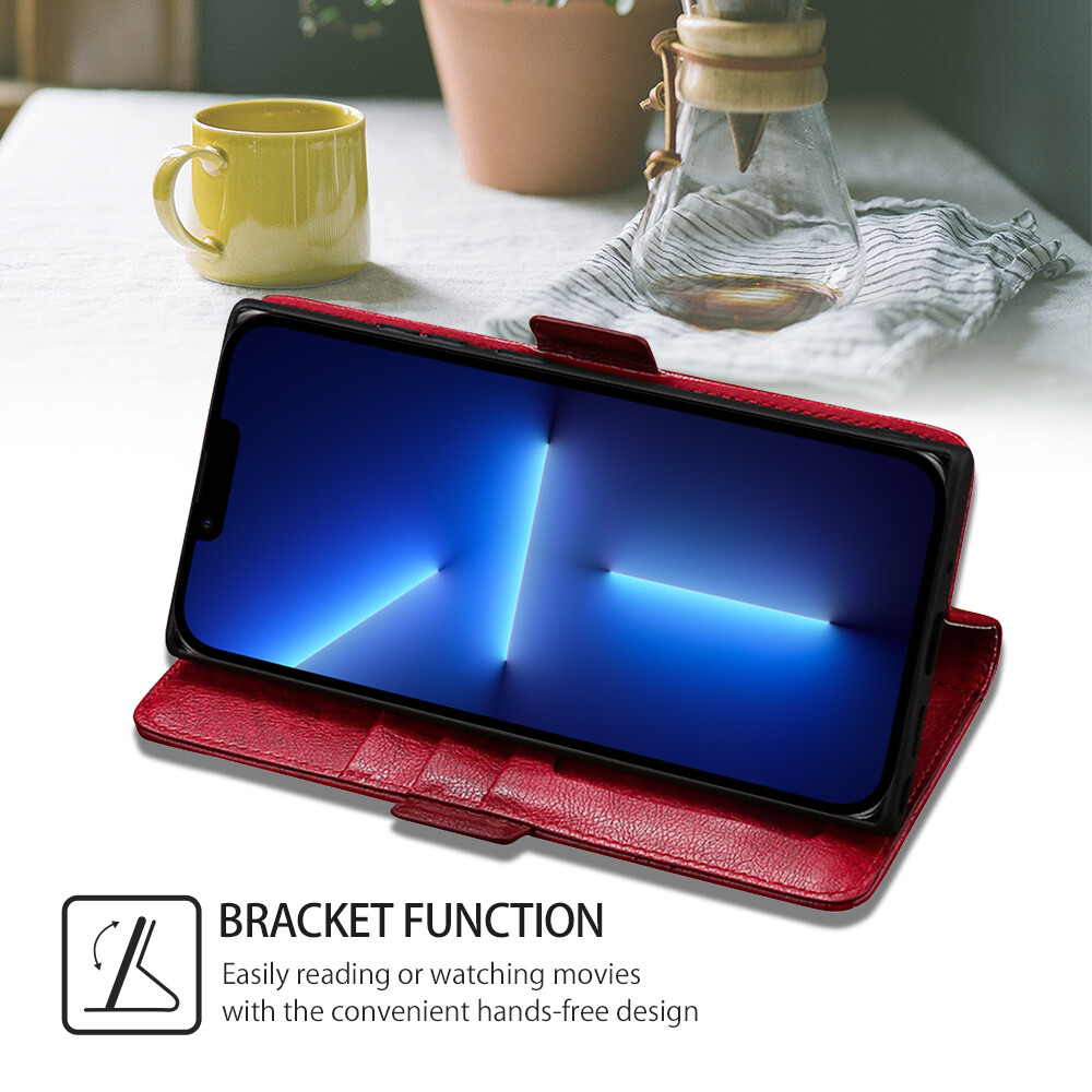 Wallet Case verfügt über eine integrierte Ständerfunktion, die sich in mehrere Betrachtungswinkel einklappen lässt, um Videos anzusehen und freihändig zu halten.