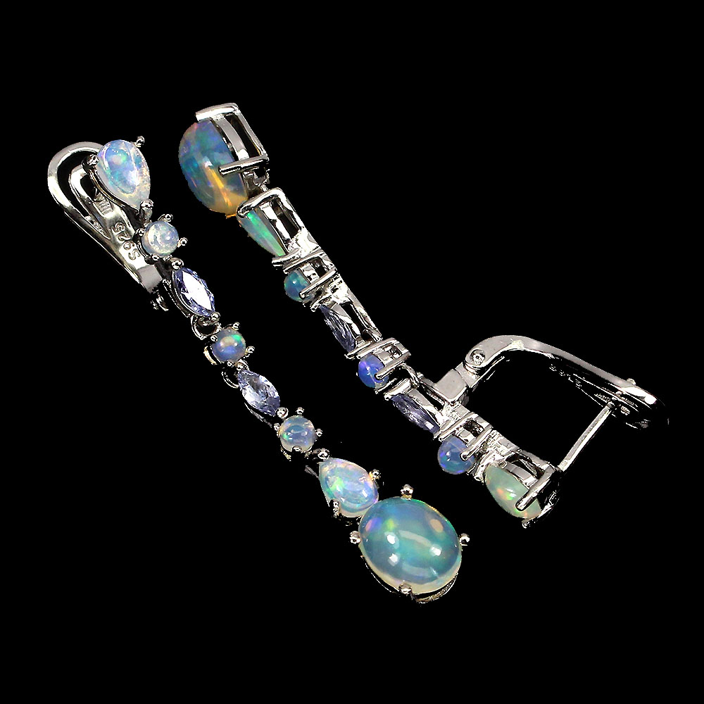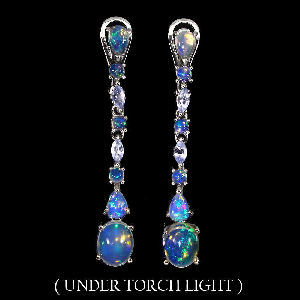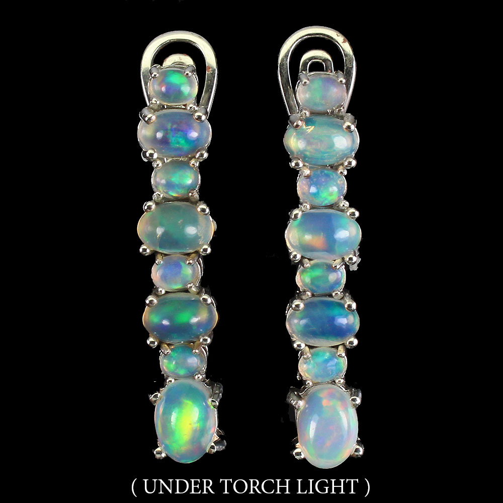 Unheated Oval Fire Opal Rainbow Full Flash 9x7mm 925 Sterling Silver Earrings