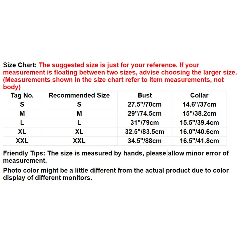 | Tag No. | Recommended Size | Collar | Bust |