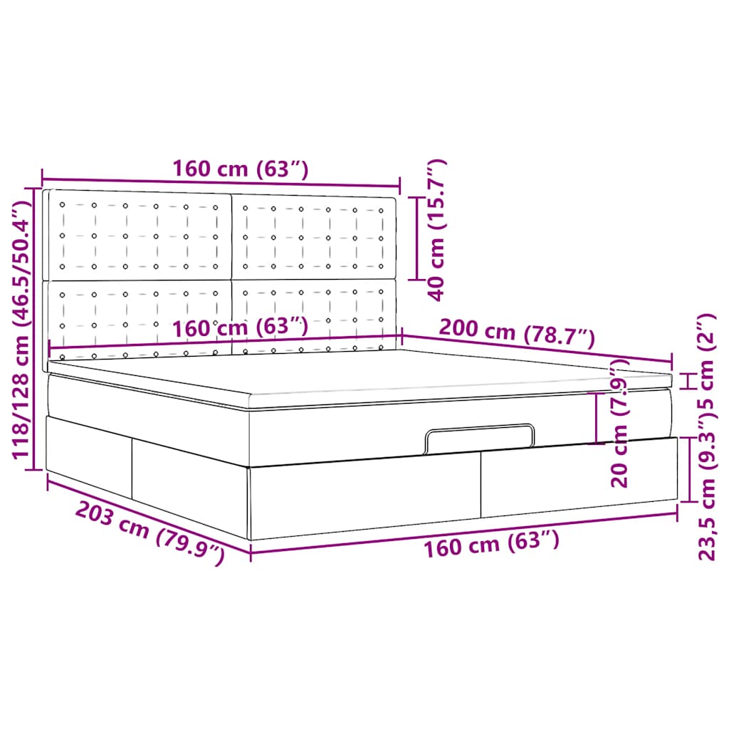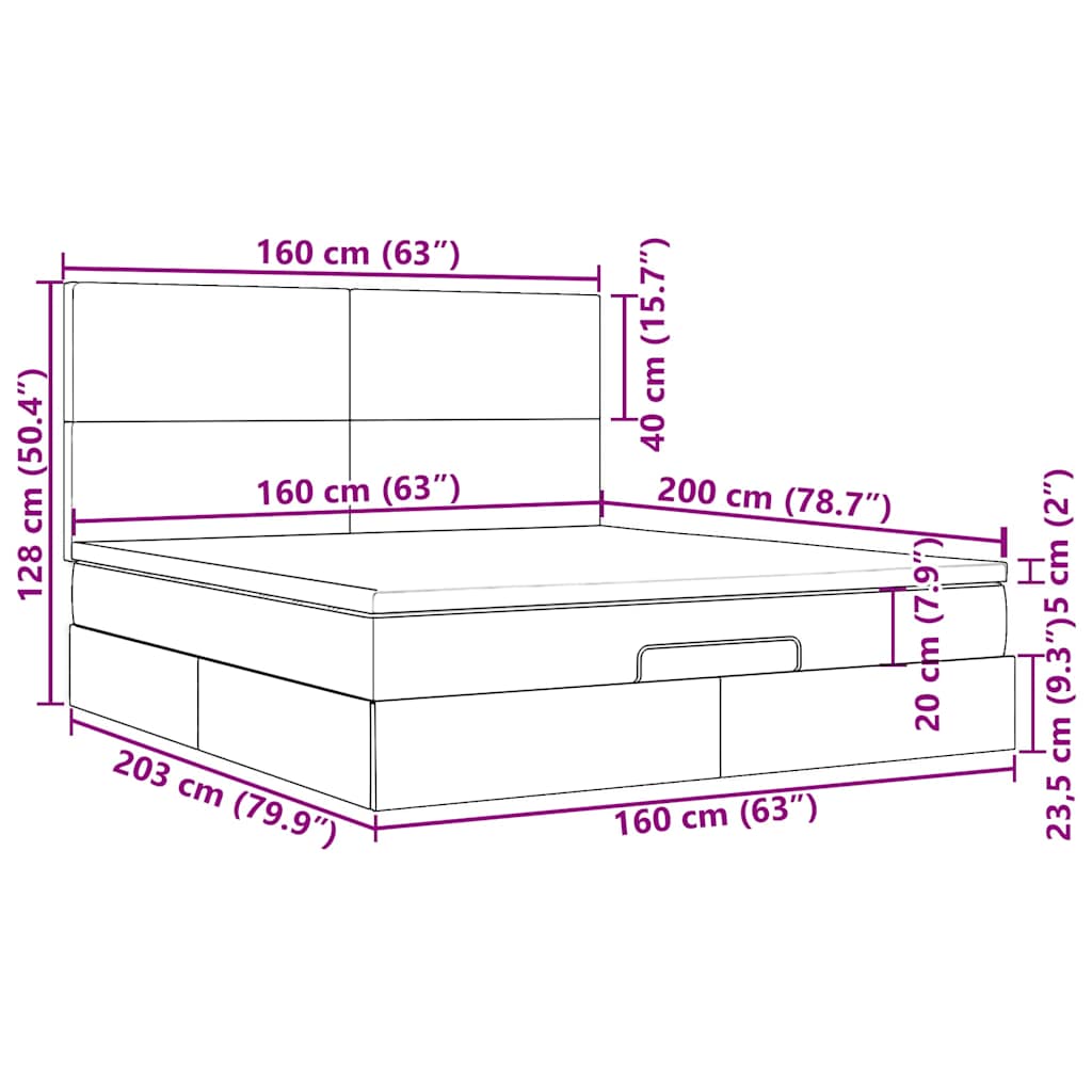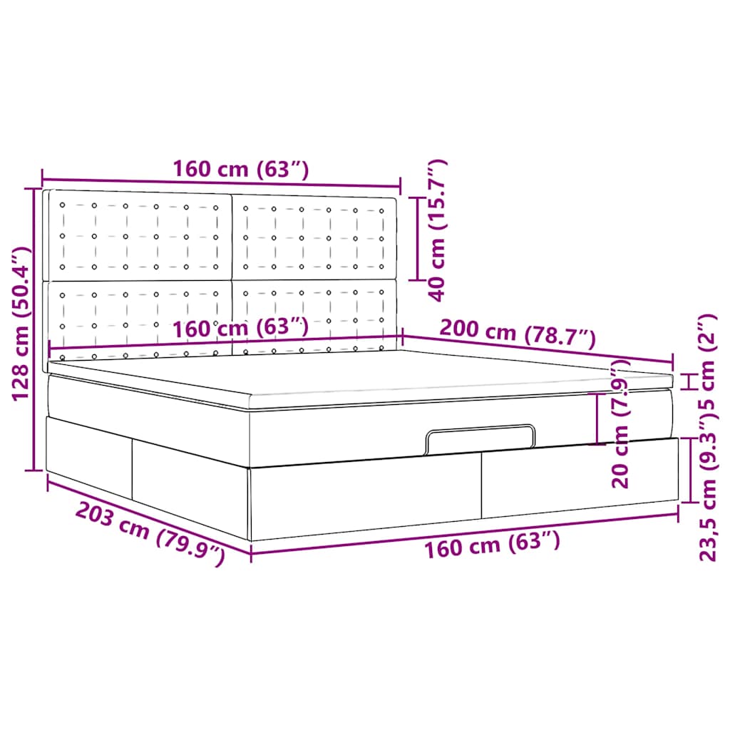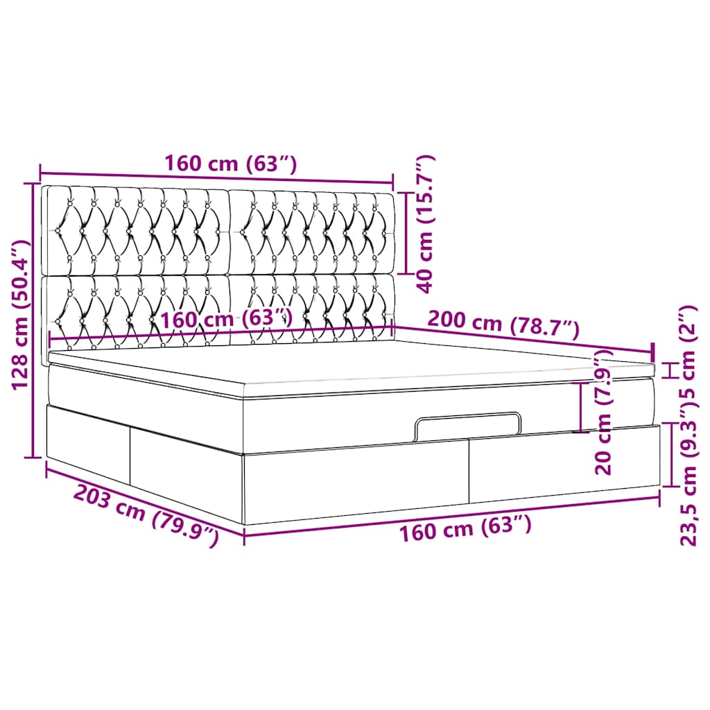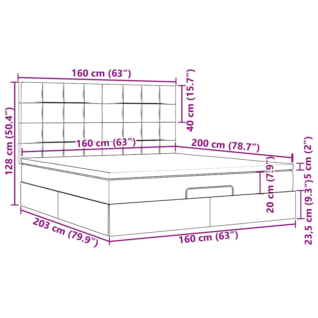 VidaXL Cadre de lit ottoman et matelas gris clair 160x200cm tissu cadre de lit vidaXL
