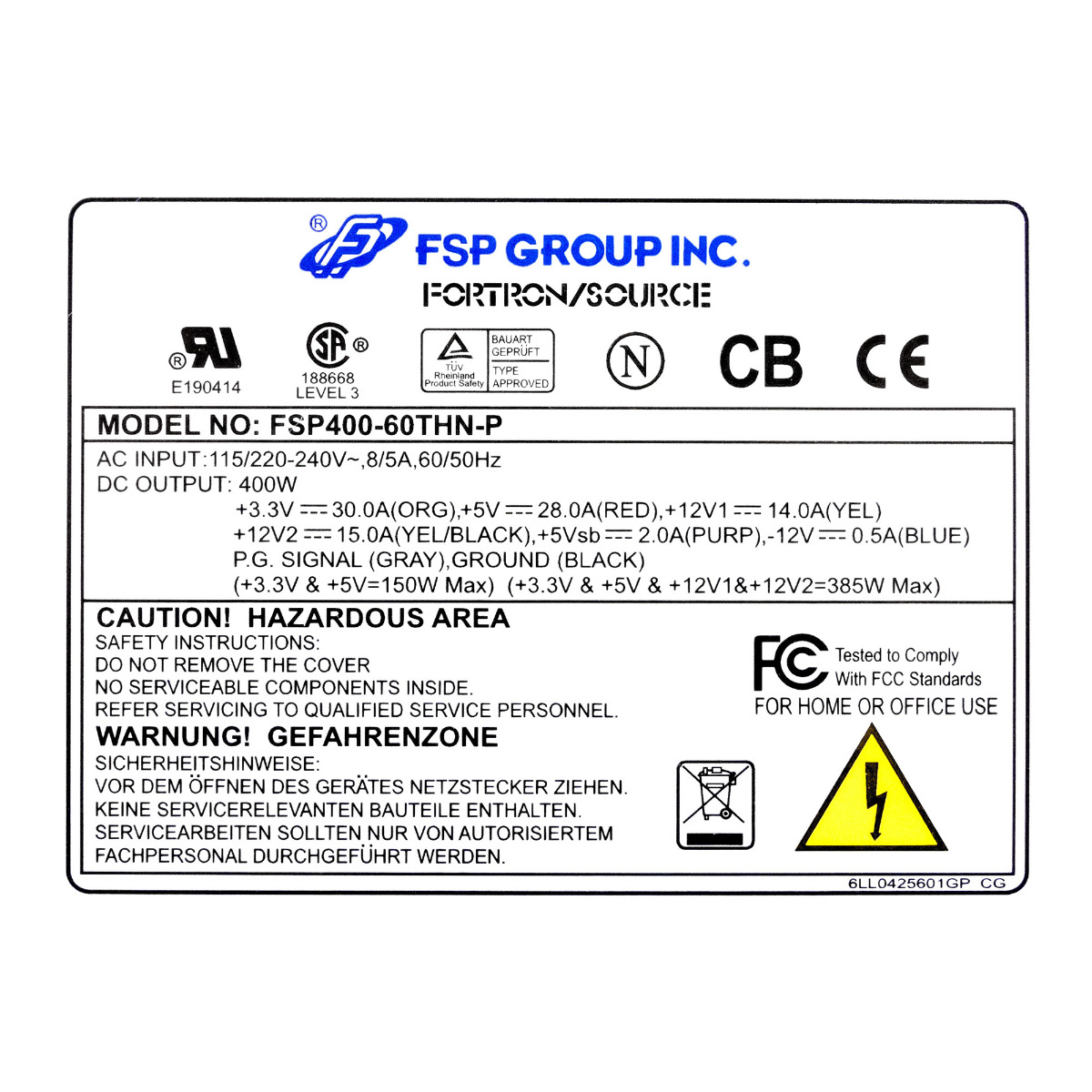 Netzteil FSP FSP400-60THN-P 9PA4001232 ATX 20+4-PIN SATA MOLEX FDD ATX12V
