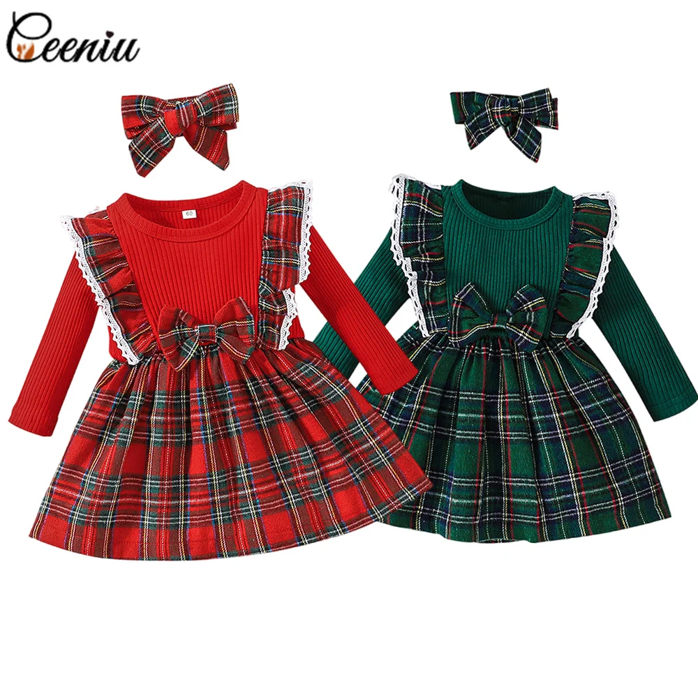 Ceeniu Baby Christmas Dresses For Girls Long Sleeve Red Plaid Princess Dress Newborn Spring Fall Toddler Infants Girl Clothes