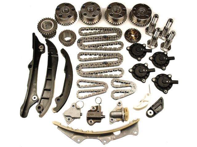 Features:- Kit Contains: Chain Tensioner (3), Chain Guide (3), Tensioner Guide (2), Oil Pump Tensioner, Timing Chain (3), Oil Pump Chain, Oil Pump Sprocket, Idler Sprocket, Crankshaft Sprocket, VVT Sprocket (4), VVT Sprocket Bolt (4), VVT Solenoid (4)