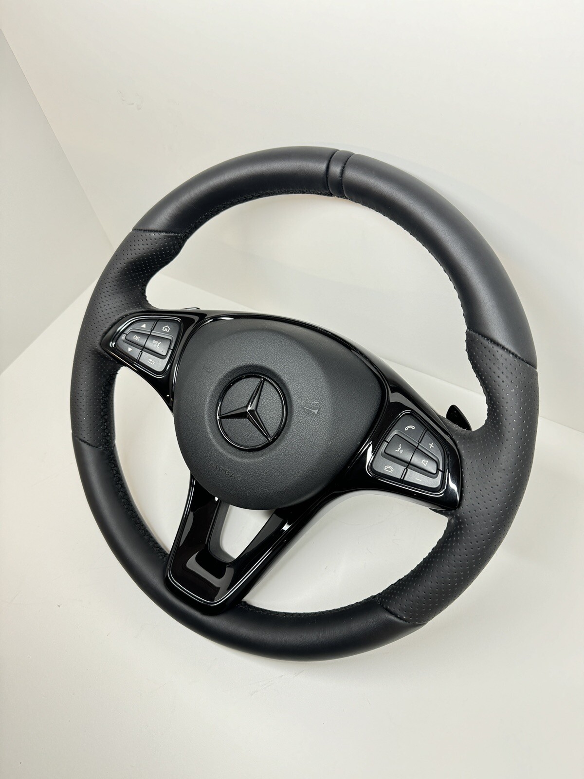 Upgrade your Mercedes Benz steering experience with this sleek black leather and aluminium steering wheel. Designed to fit all models including W205, W166, and W213, this multifunctional steering wheel features telephone controls, cruise control, and stereo controls for ease of use. The brand new steering wheel comes with a manufacturer part number of A2054602603 and reference OE/OEM number of A00046036039E38. Enhance your driving experience with this stylish and functional steering wheel, perfect for any Mercedes Benz enthusiast.
