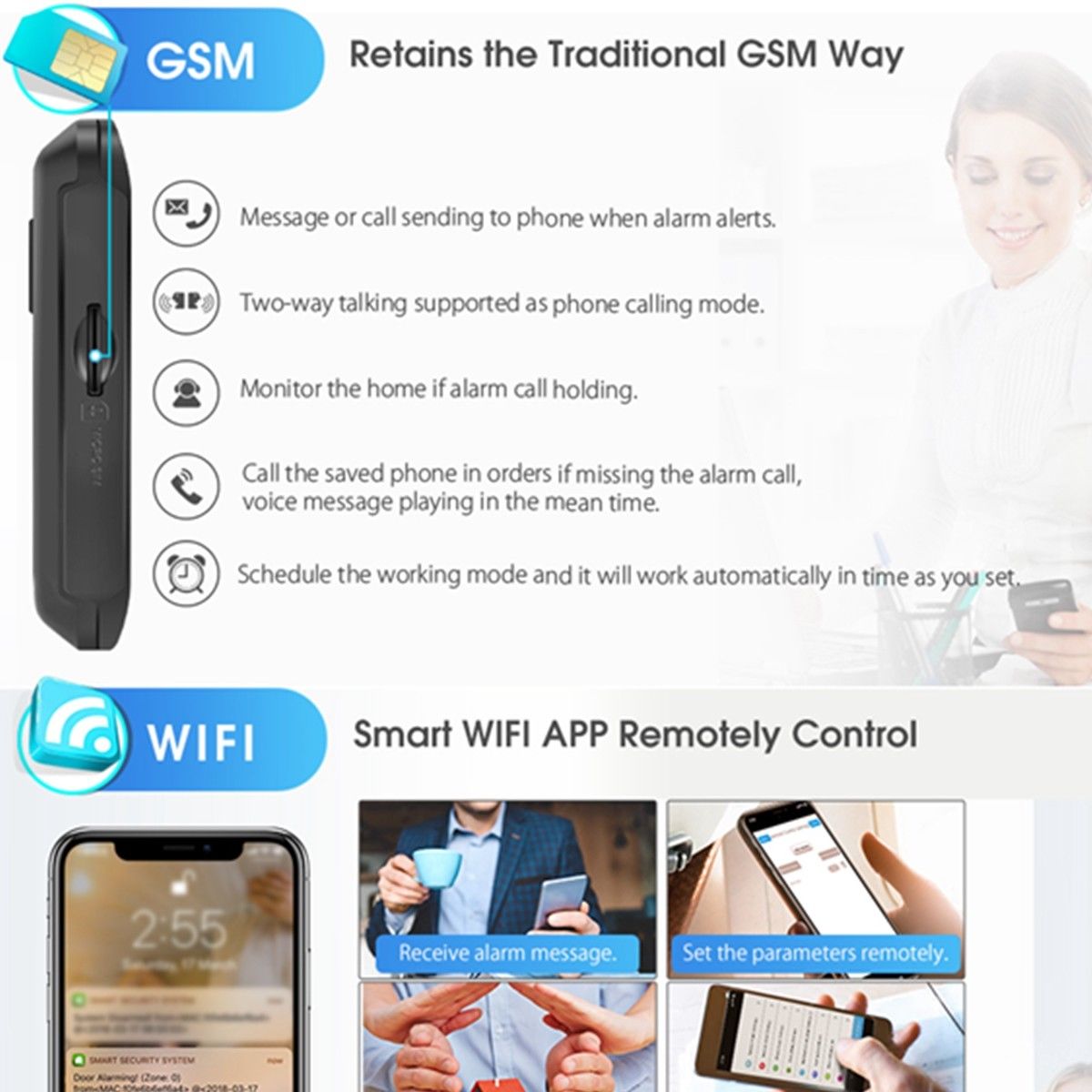 Q: Can this alarm system work with WIFI and GSM Sim Card together? So if the WIFI failure, can switch GSM mode to work.