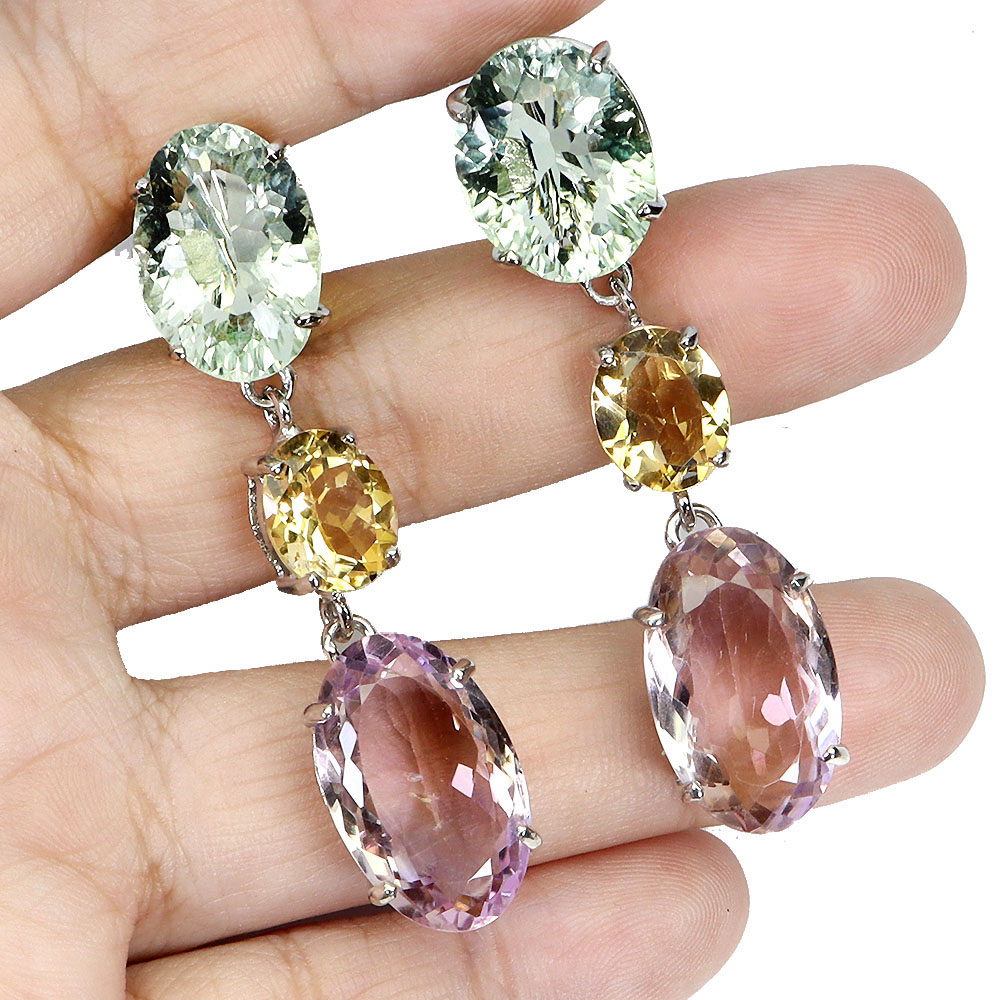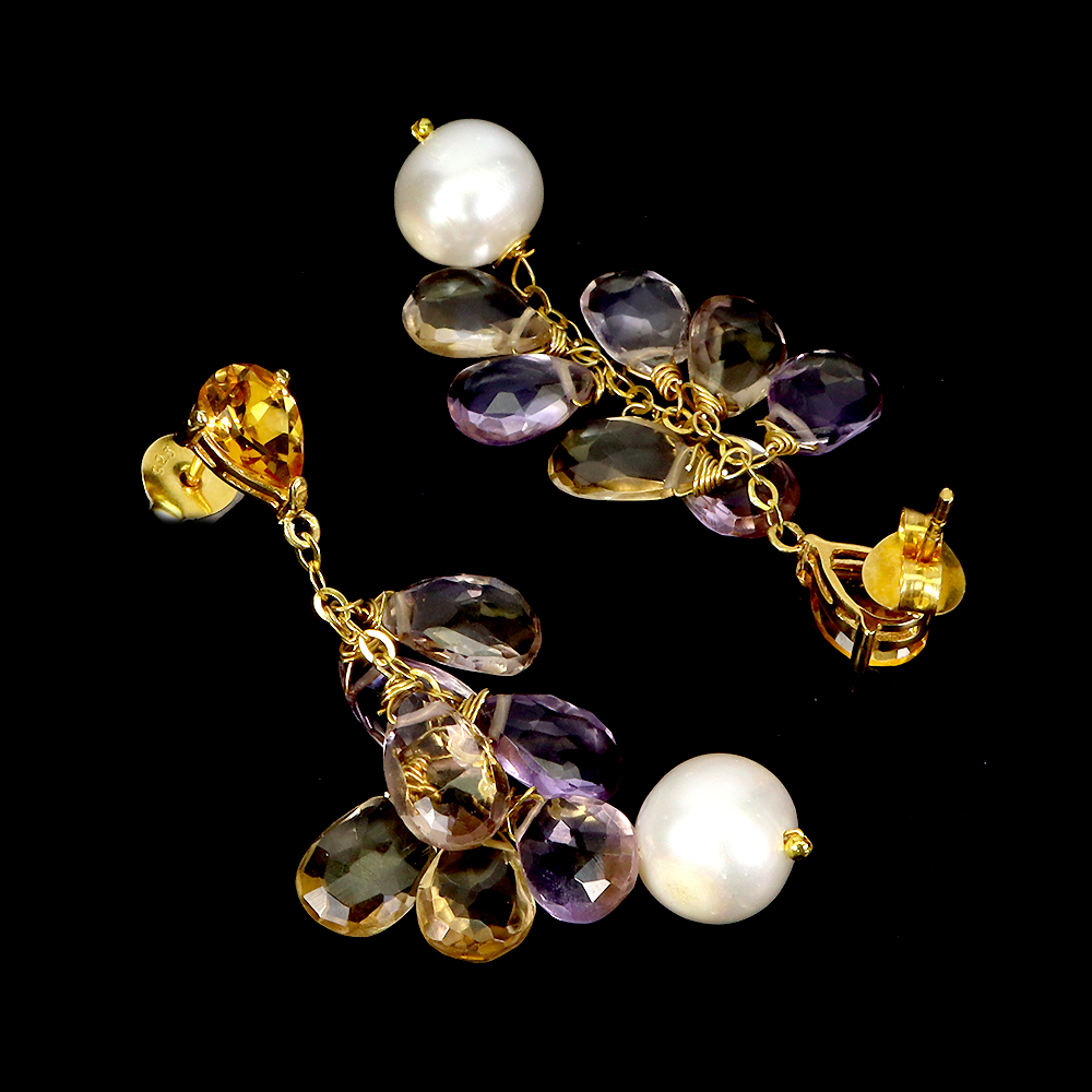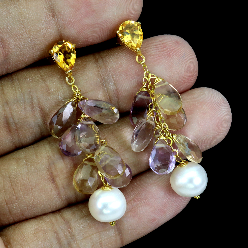 925 Sterling Silver Earrings Briolette Ametrine Citrine Pearl Gemstone Jewelry