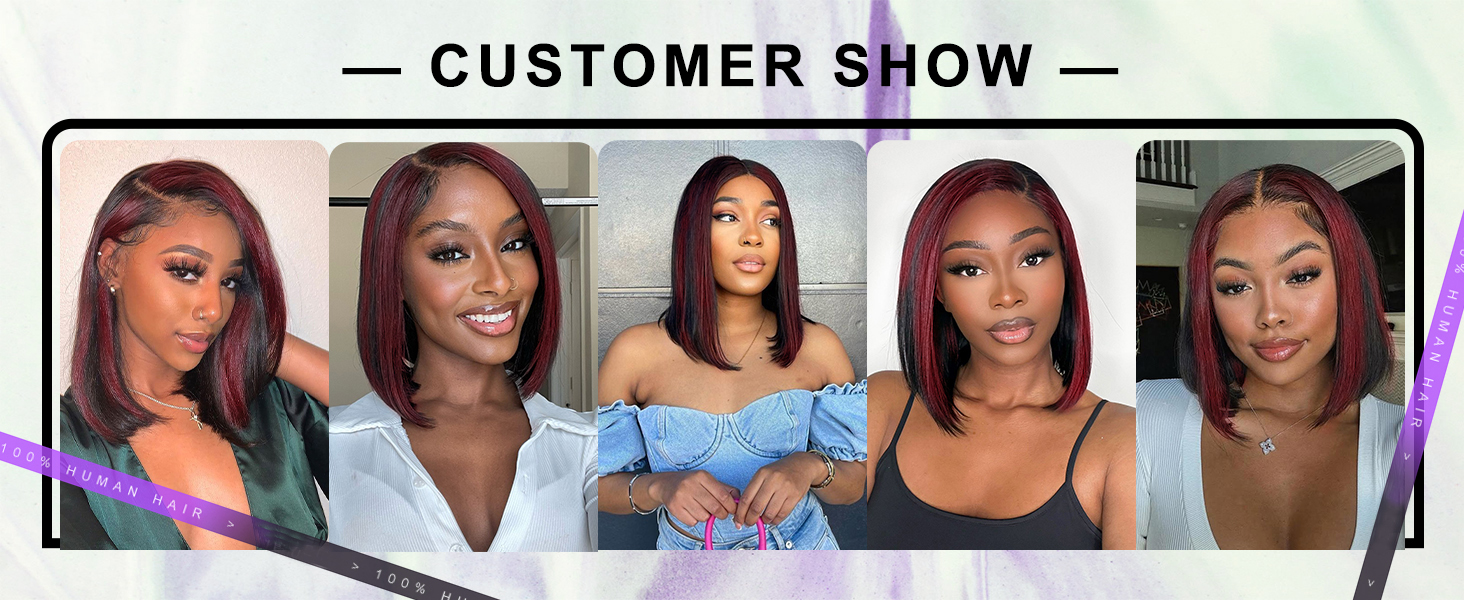 Hair Type: 13×4 1B/99j Highlight Bob Lace Front Wig Human Hair Pre Plucked With Baby Hair
