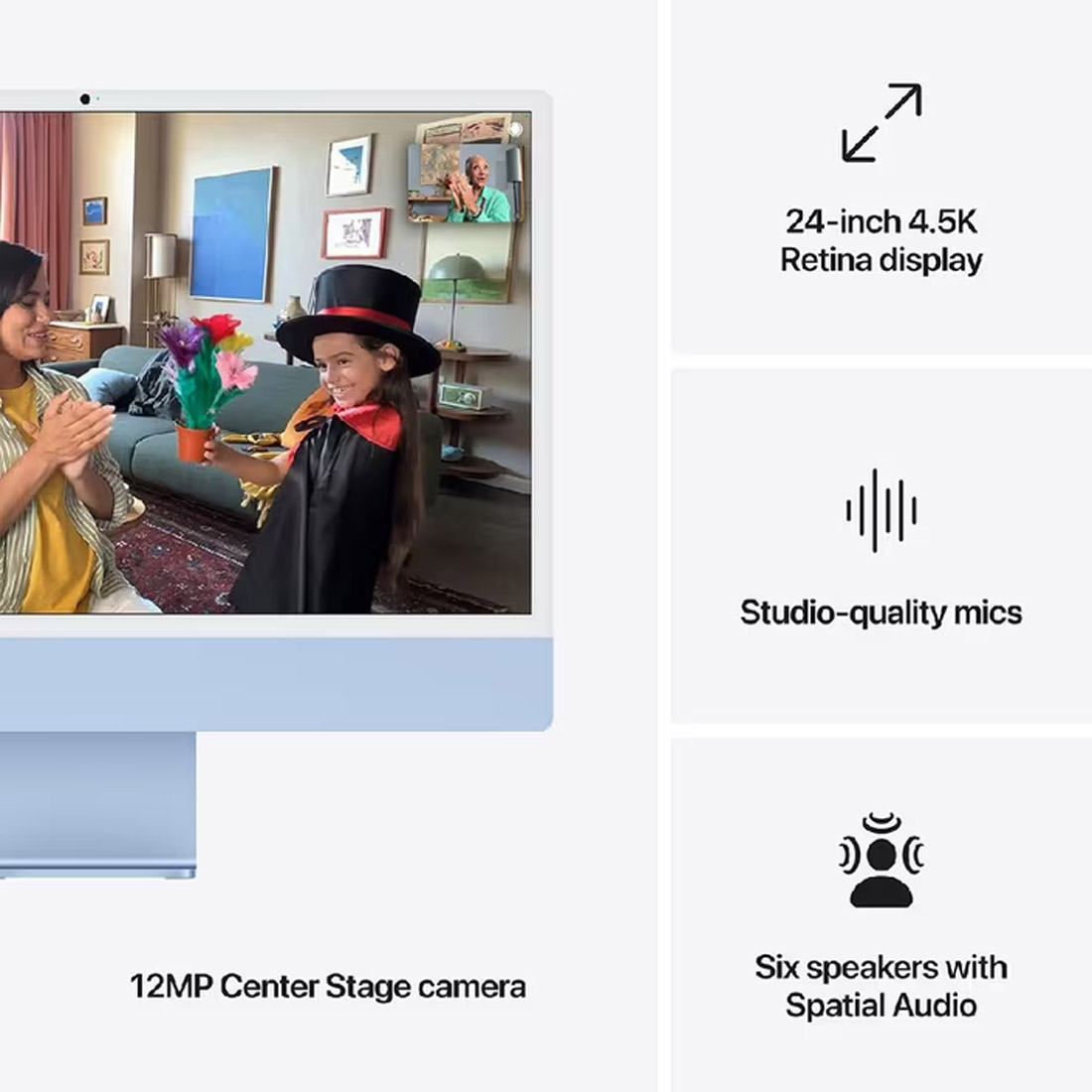 The 24-inch 4.5K Retina display features 500 nits of brightness and supports up to 1 billion colours. - Advanced Camera And Audio