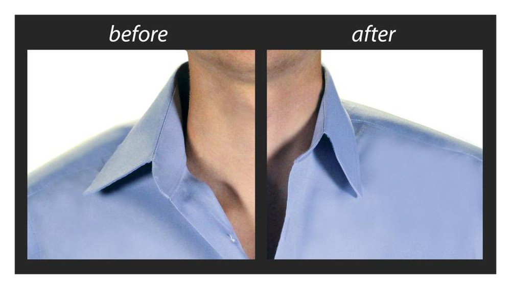 - Stop folded plackets, droopy and saggy collars, high collar, professional look