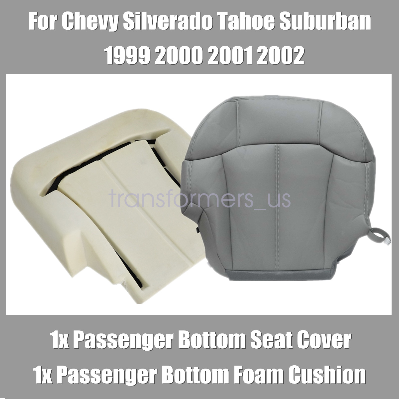 Replacement For 1999 2000 2001 2002 Chevy Silverado Suburban Tahoe Replacement Passenger Bottom Leather Seat Cover & Foam Cushion Pewter Gray Color Code 122 or 922