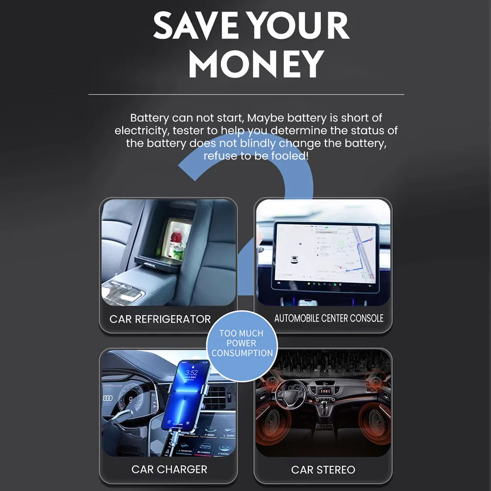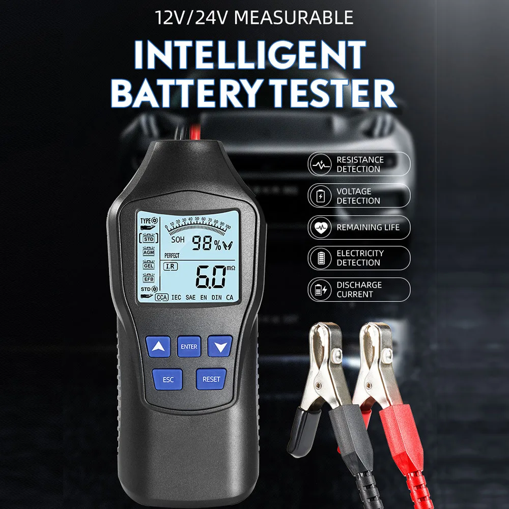 Car Battery Tester Intelligent 12V/24V Automotive Quick Load Plug Cranking Check Diagnostic Scan Tool LCD Digital Display Screen