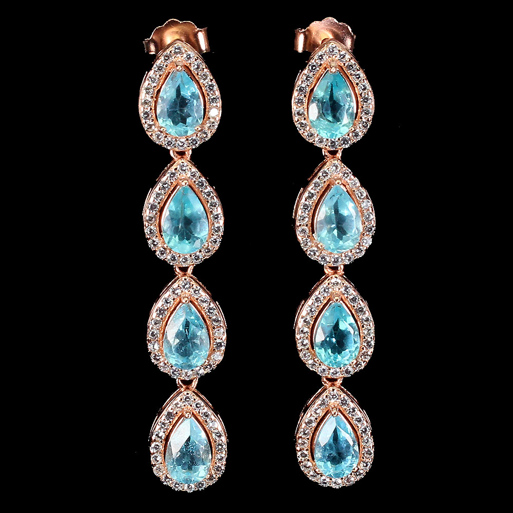 Unheated Pear Neon Blue Apatite 6x4mm Simulated Cz 925 Sterling Silver Earrings