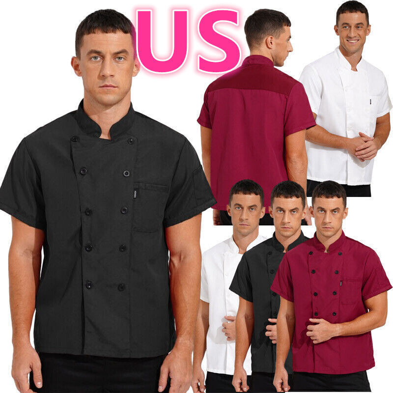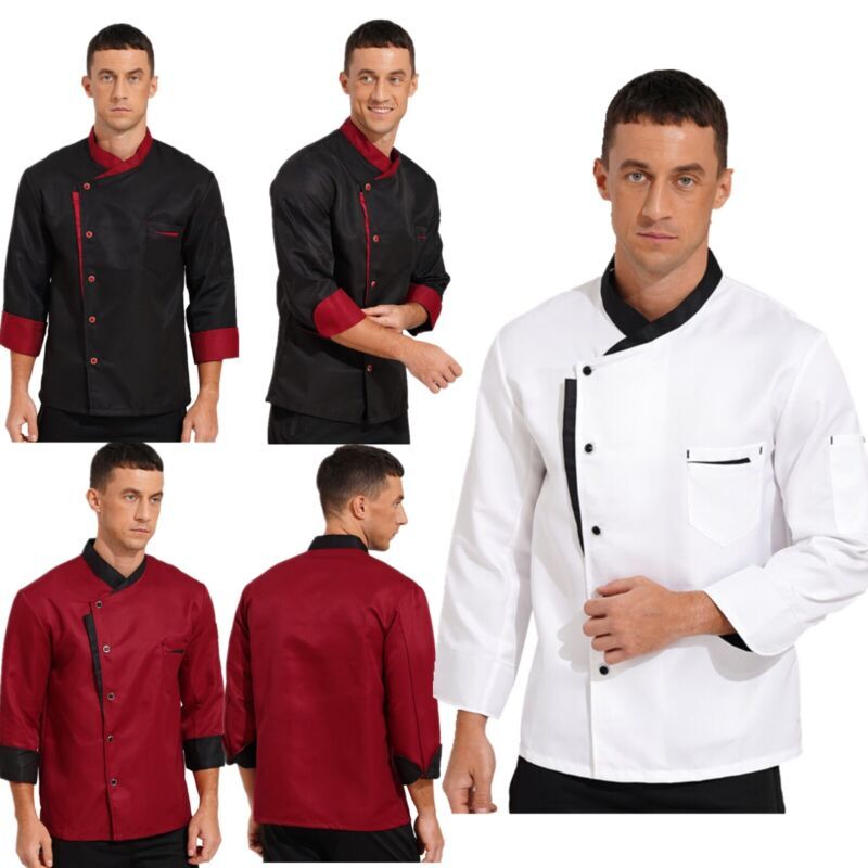 US Men Long Sleeve Chef Jacket Unisex Cook Chef Coat Kitchen Restaurant Workwear