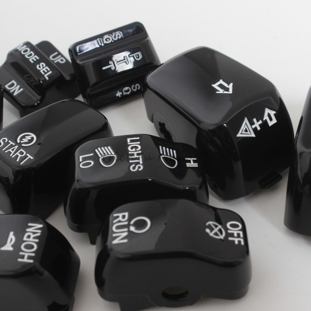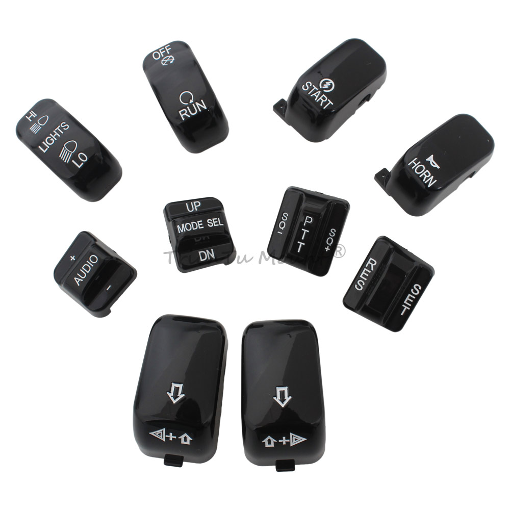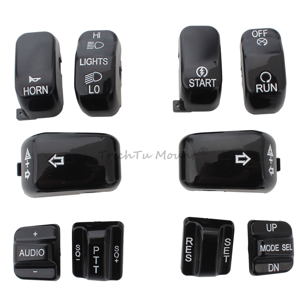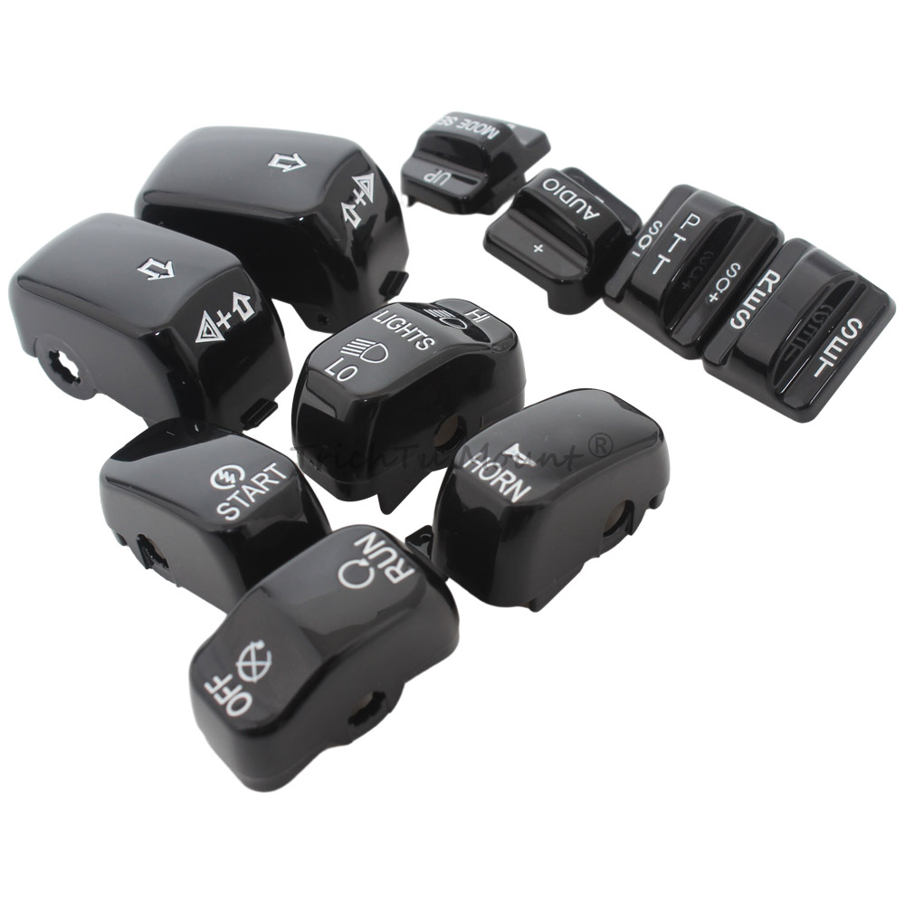 Description: Caps are a direct replacment for the standard equipment black switch caps Replace the stock black caps without re-wiring Shaped for the same ergonomic feel as the Original Equipment hand control switches Black switch caps complement other chrome hand control accessories (Chrome/black Master Cylinder Kit, Chrome/black Hand Levers, Chrome/black Switch Housings and Chrome/black Master Cylinder Cover) Specification: Condition: 100% Brand New Material: High Quality ABS Plastic Color: Black Placement on Vehicle: Left and Right Package included: 1 set of Hand Switch Cap Fitment: Fits For Harley '96-'13 FLHTCU, FLHTK, FLTR and FLTRU and '09-'13 FLHTCUTG models. For Harley CVO Electra Glide FLHTCSE 2004 For Harley CVO Electra Glide FLHTCSE2 2005 For Harley CVO Road Glide 2 FLTRSEI2 2001 For Harley CVO Road Glide EFI FLTRSEI 2000 For Harley CVO Road Glide FLTRSE3 2009 For Harley CVO Ultra Classic Electra Glide FLHTCUSE 2006 For Harley CVO Ultra Classic Electra Glide FLHTCUSE2 2007 For Harley CVO Ultra Classic Electra Glide FLHTCUSE3 2008 For Harley CVO Ultra Classic Electra Glide FLHTCUSE4 2009 For Harley CVO Ultra Classic FLHTCUSE5 2010 For Harley Electra Glide Ultra Limited FLHTK 2010-2013 For Harley Road Glide EFI FLTRI 1998-2006 For Harley Road Glide FLTR 1998-2002,2007-2009 For Harley Road Glide Ultra FLTRU 2011-2013 For Harley Street Glide Trike FLHXXX 2010-2011 For Harley Tri Glide Ultra Classic FLHTCUTG 2009-2013 For Harley Ultra Classic Electra Glide EFI FLHTCUI 1996-2006 For Harley Ultra Classic Electra Glide FLHTCU 1996-2013