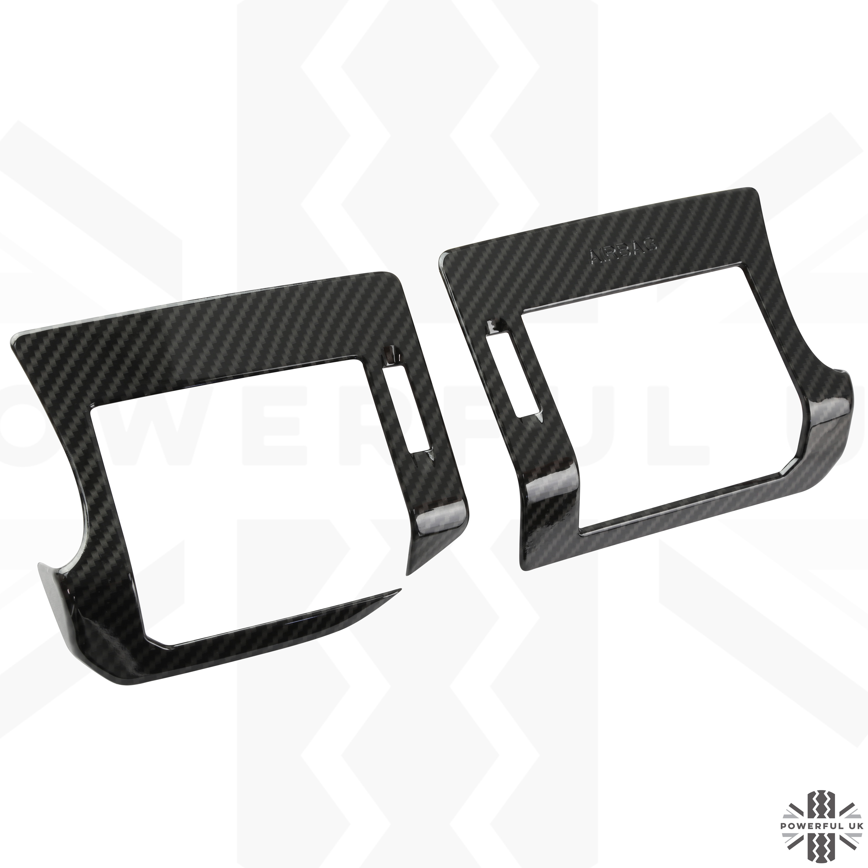 This listing is for a pair of Carbon Fibre effect dash end air vent panels cover for the Defender L663 (Left hand drive models).