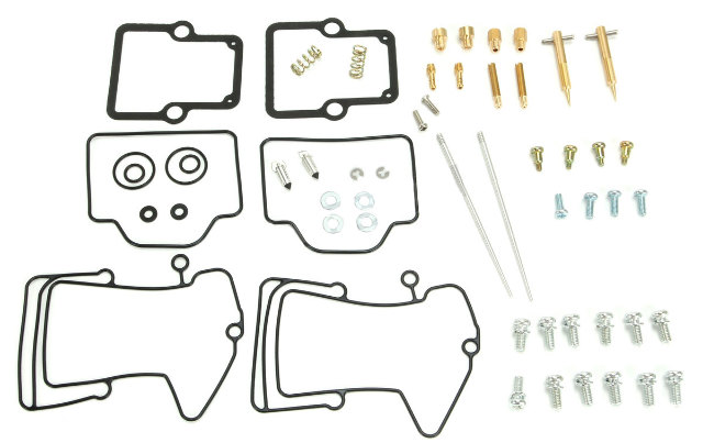 Kit includes all necessary O-rings, gaskets, jets, needle, mixture screw, float bowl screws, float valve needle and seat (needle jet and other pressed-in jets are not included in kit)