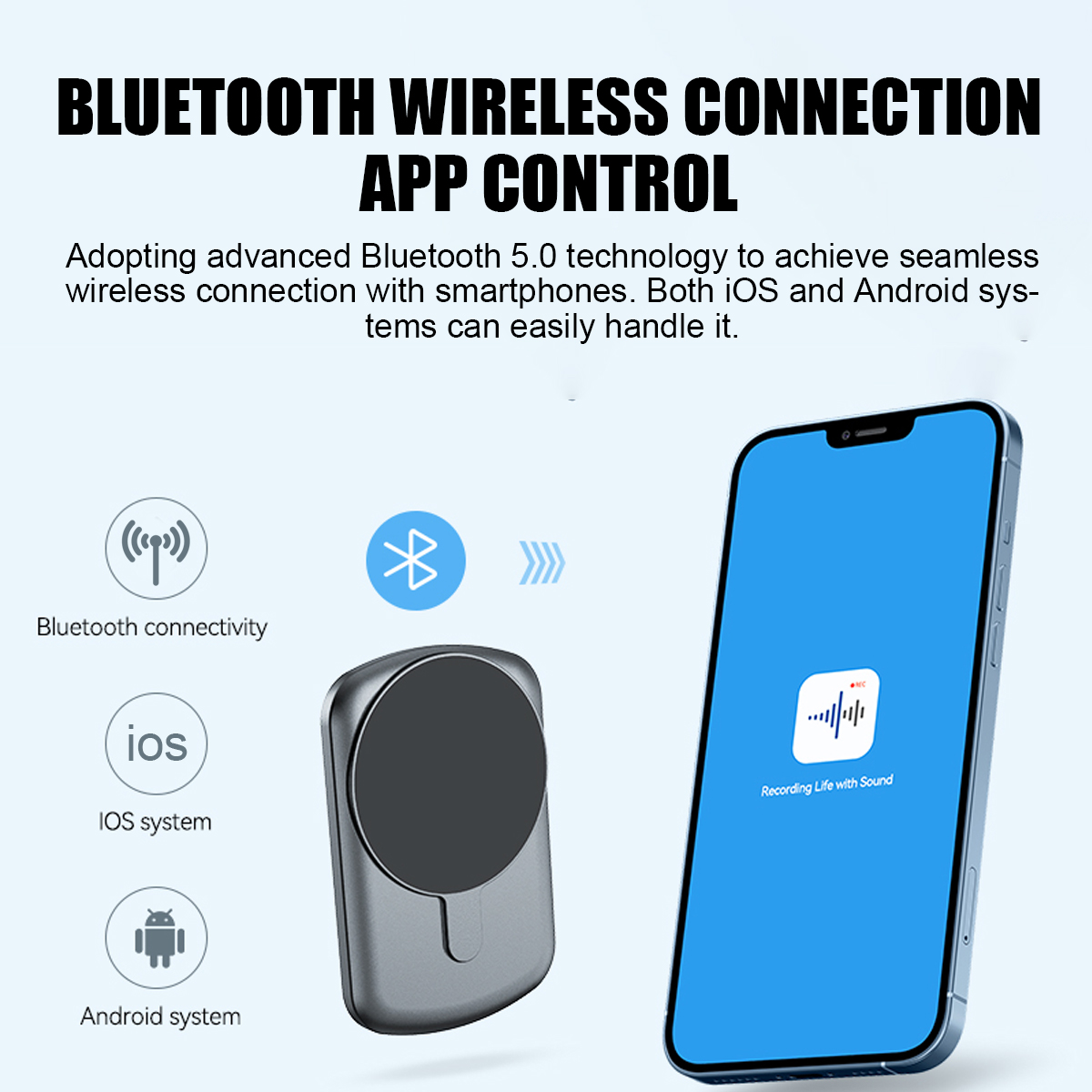 1. Six core functions,Meet your needs: App recording, bluetooth connectivity, storng magnetice adsorption, one click recording, local recording, call phone recording