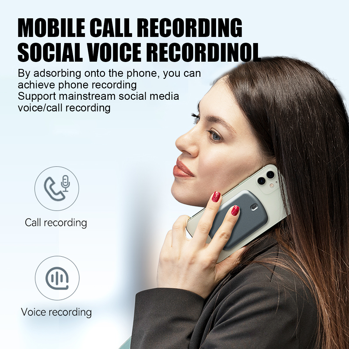 4. Mobile call recording,Social voice recording:By adsorbing onto the phone, you can achieve phone recording.Support recording voice/call recordings on main stream social media platforms.