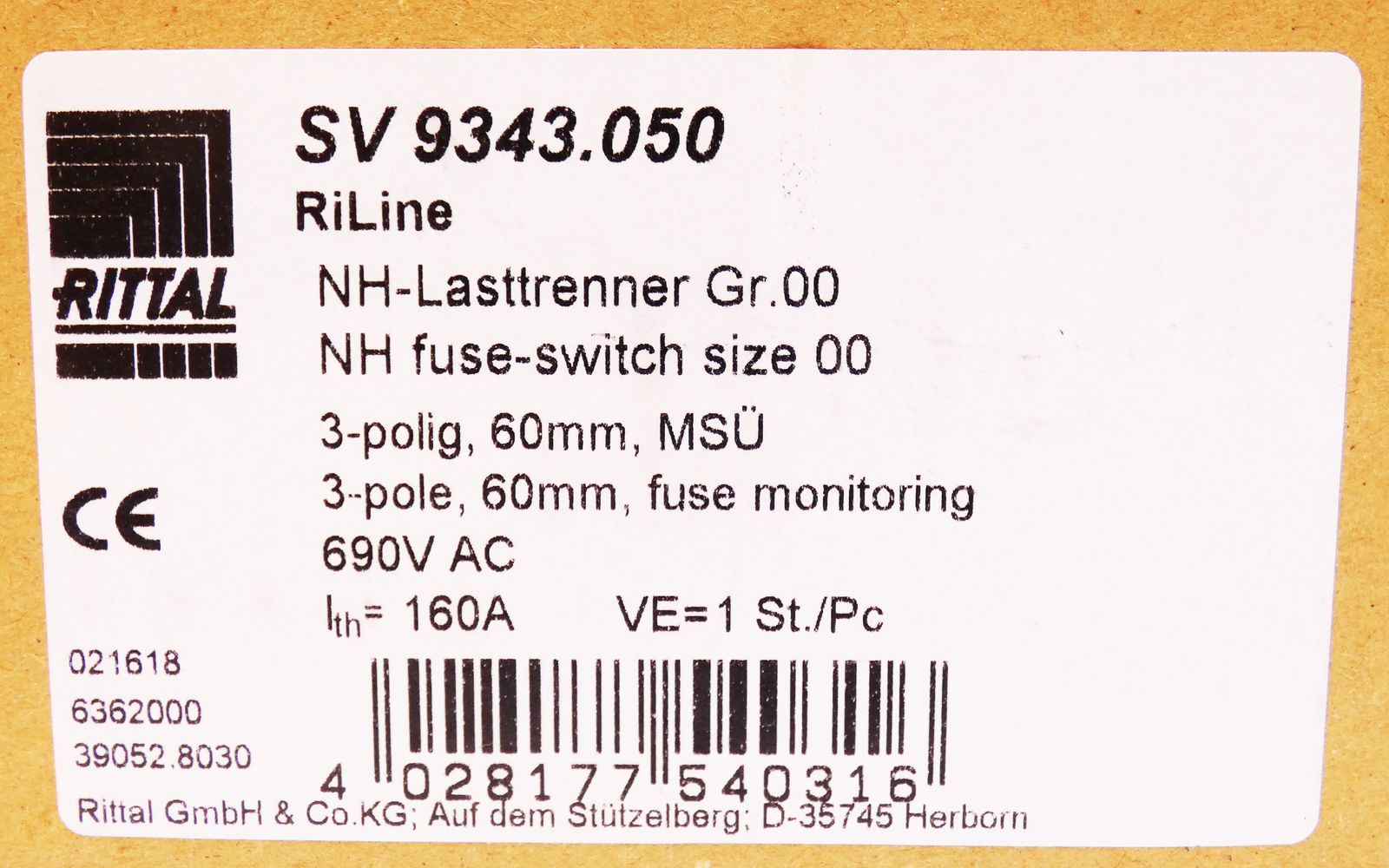 Die Verpackung ist fremdbeschrieben.