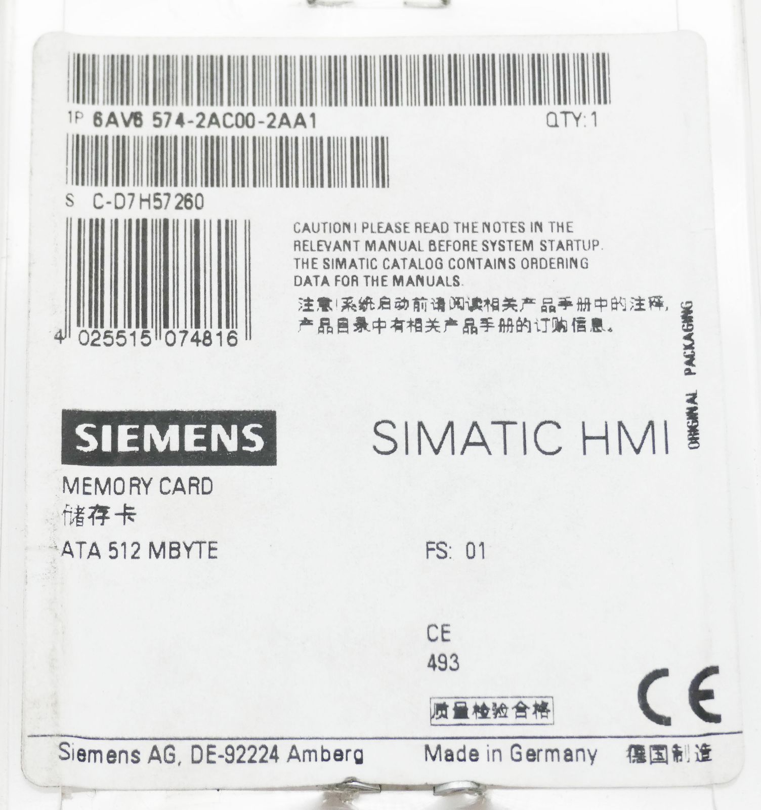 Siemens SIMATIC HMI 6AV6574-2AC00-2AA1 6AV6 574-2AC00-2AA1 E: 01 512MB -unused-