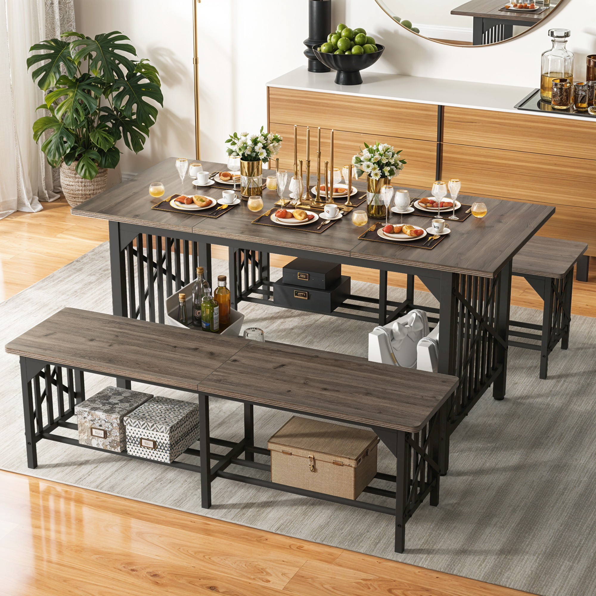 Designed for convenience, the benches neatly tuck under the table when not in use, making it ideal for small spaces, apartments, and studios. The adjustable legs ensure stability on uneven surfaces, providing a secure and comfortable dining experience. Whether you're hosting a formal dinner or enjoying a quick meal, this versatile dining set adapts to your lifestyle while optimizing your space.