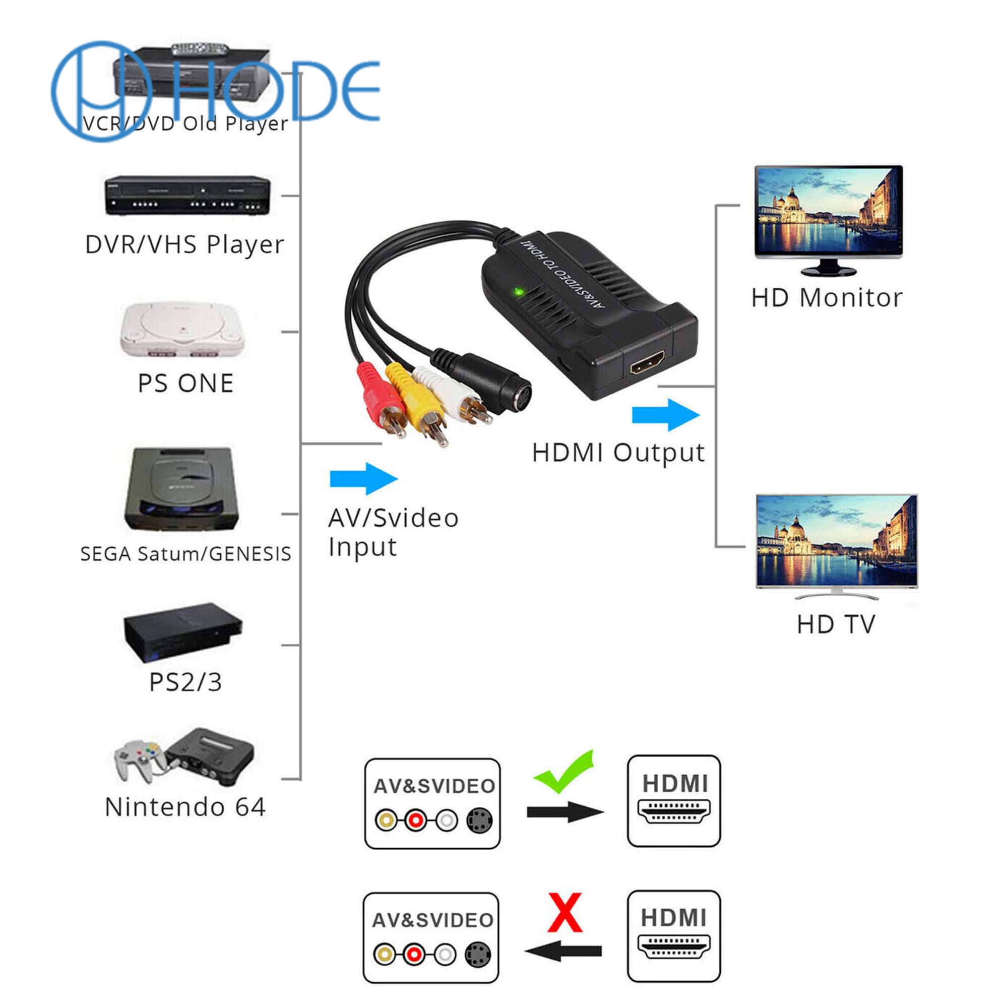1 x Male AV/s-video to HDMI converter