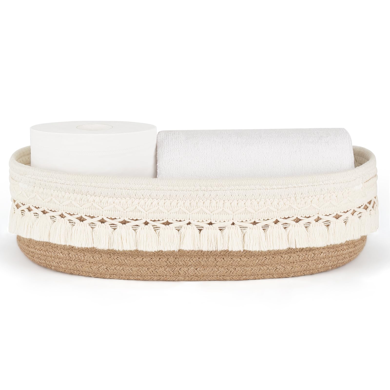 Dahey Woven Basket Macrame Storage Basket for Toilet Tank Top Boho Decor Toilet Paper Basket for Bathroom Organizing, Toilet Tank Tray for Counter Table Bedroom Living Room Nursery, Brown