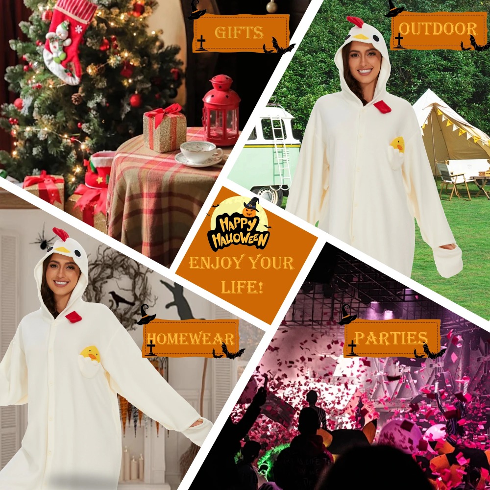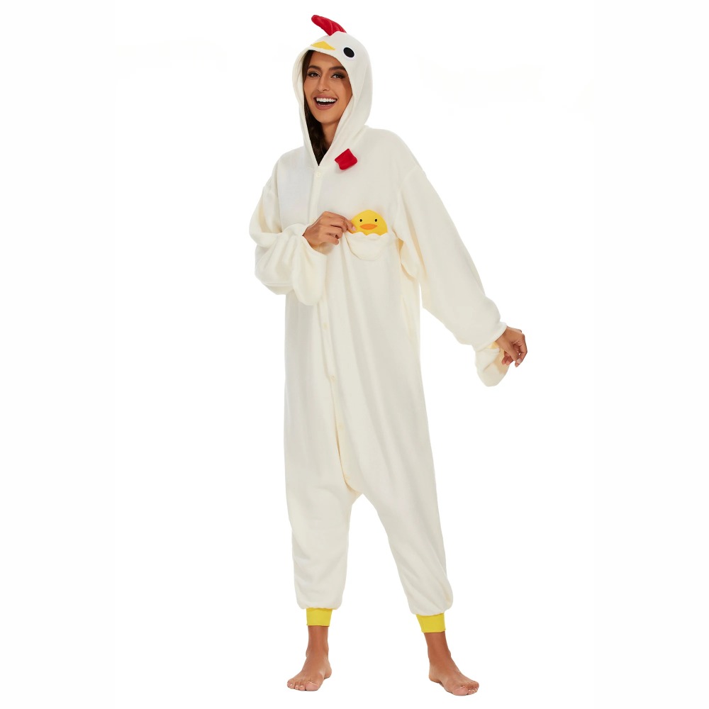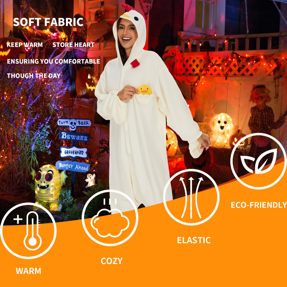 1.On chilly winter evenings,our white chicken onesies provide extra warmth and coziness. Whether watching a movie, reading a book, or simply relaxing in bed,