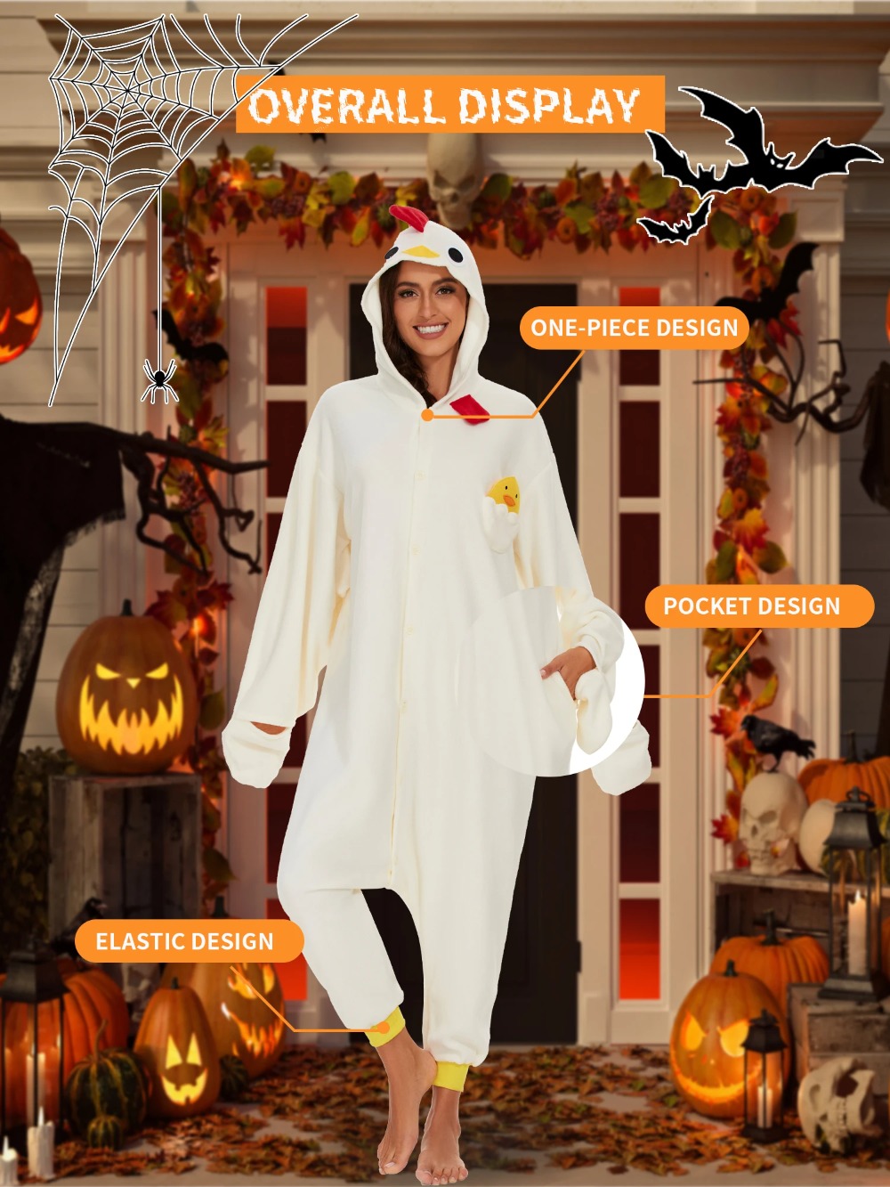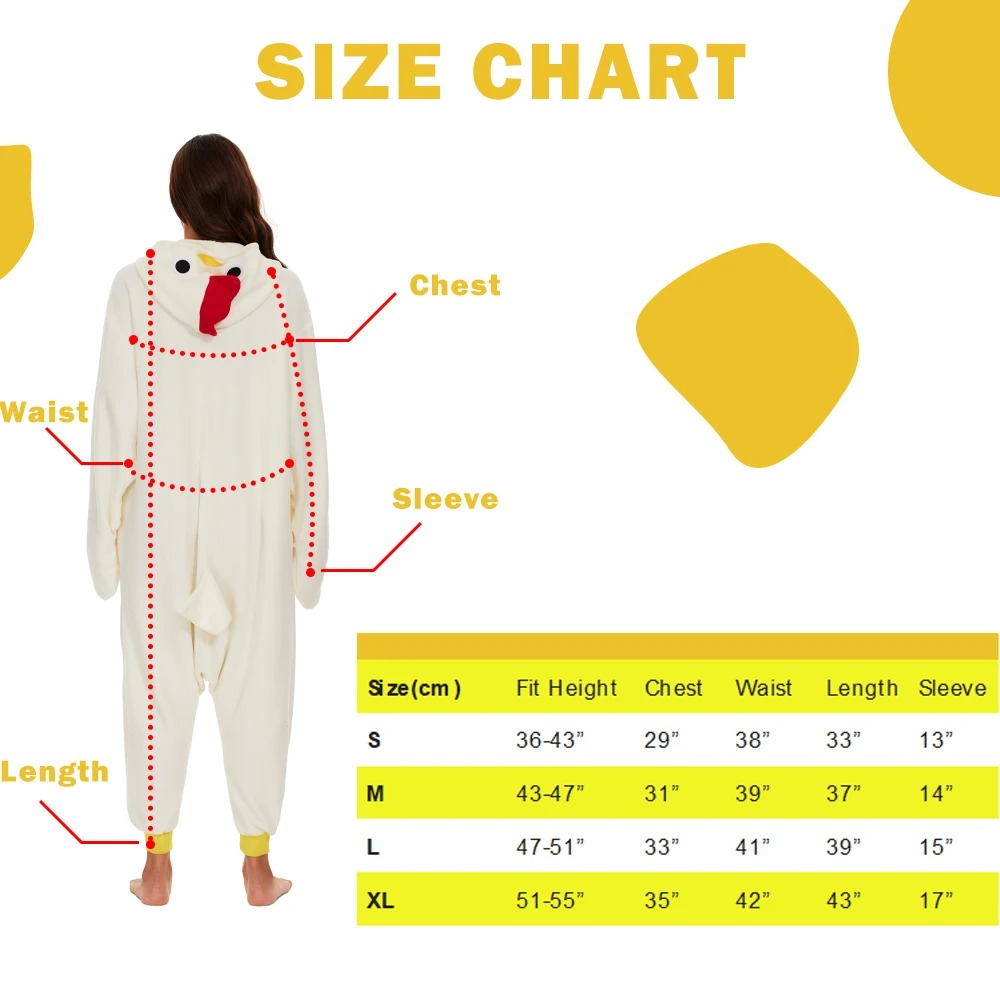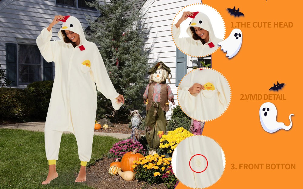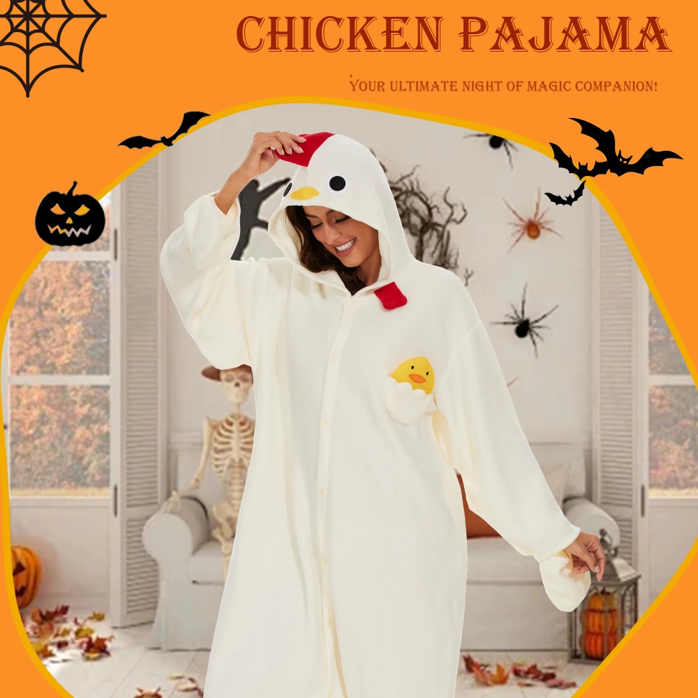 1.On chilly winter evenings,our white chicken onesies provide extra warmth and coziness. Whether watching a movie, reading a book, or simply relaxing in bed,