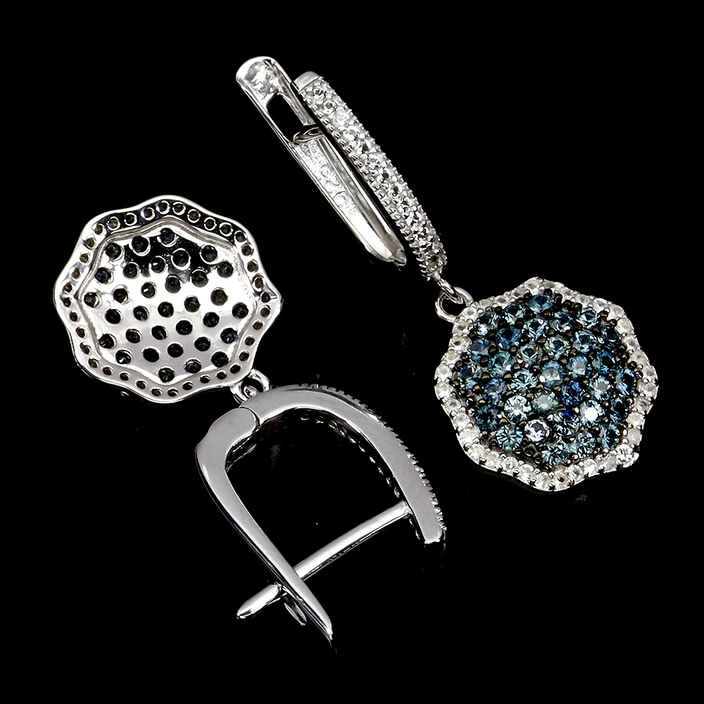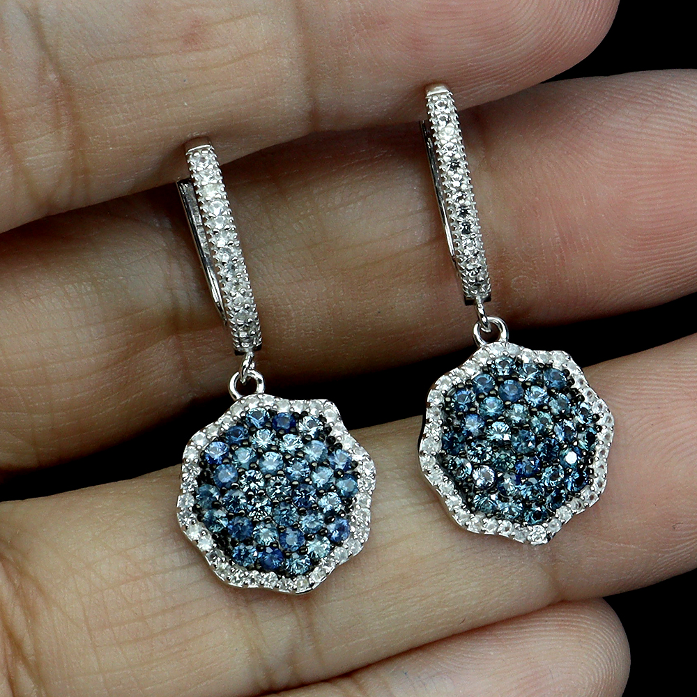 Valentine 925 Silver Earrings Round Blue Sapphire Topaz Gemstone Jewelry