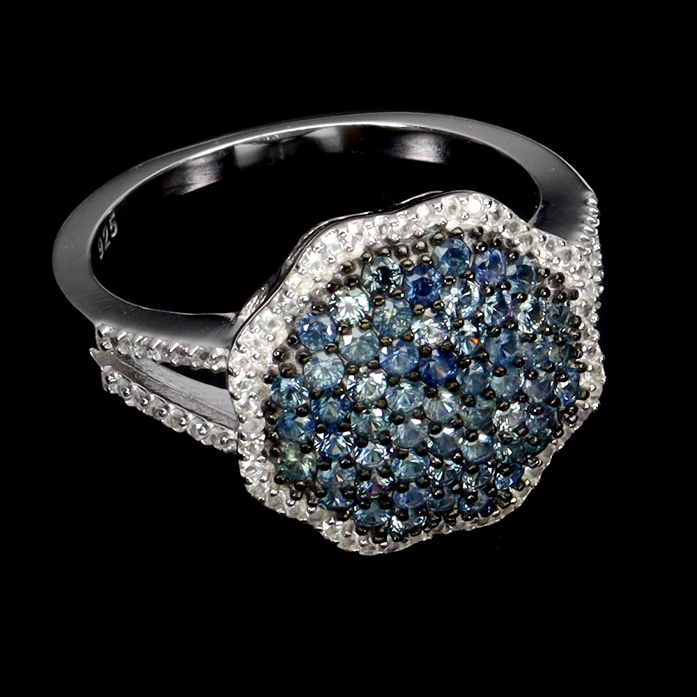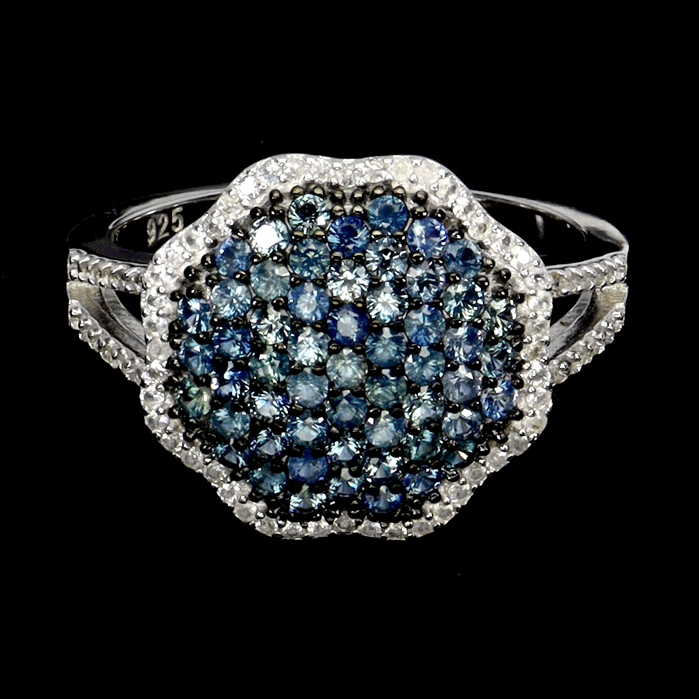Valentine 925 Silver Ring Round Blue Sapphire White Topaz Gemstone Jewelry