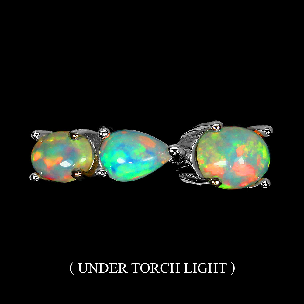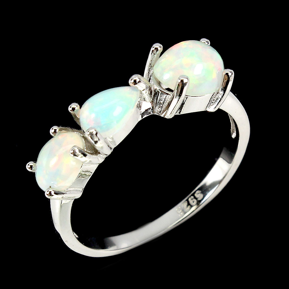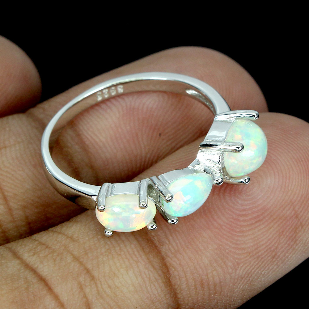 Unheated Oval Fire Opal Rainbow Full Flash 7x5mm 925 Sterling Silver Ring Size 7