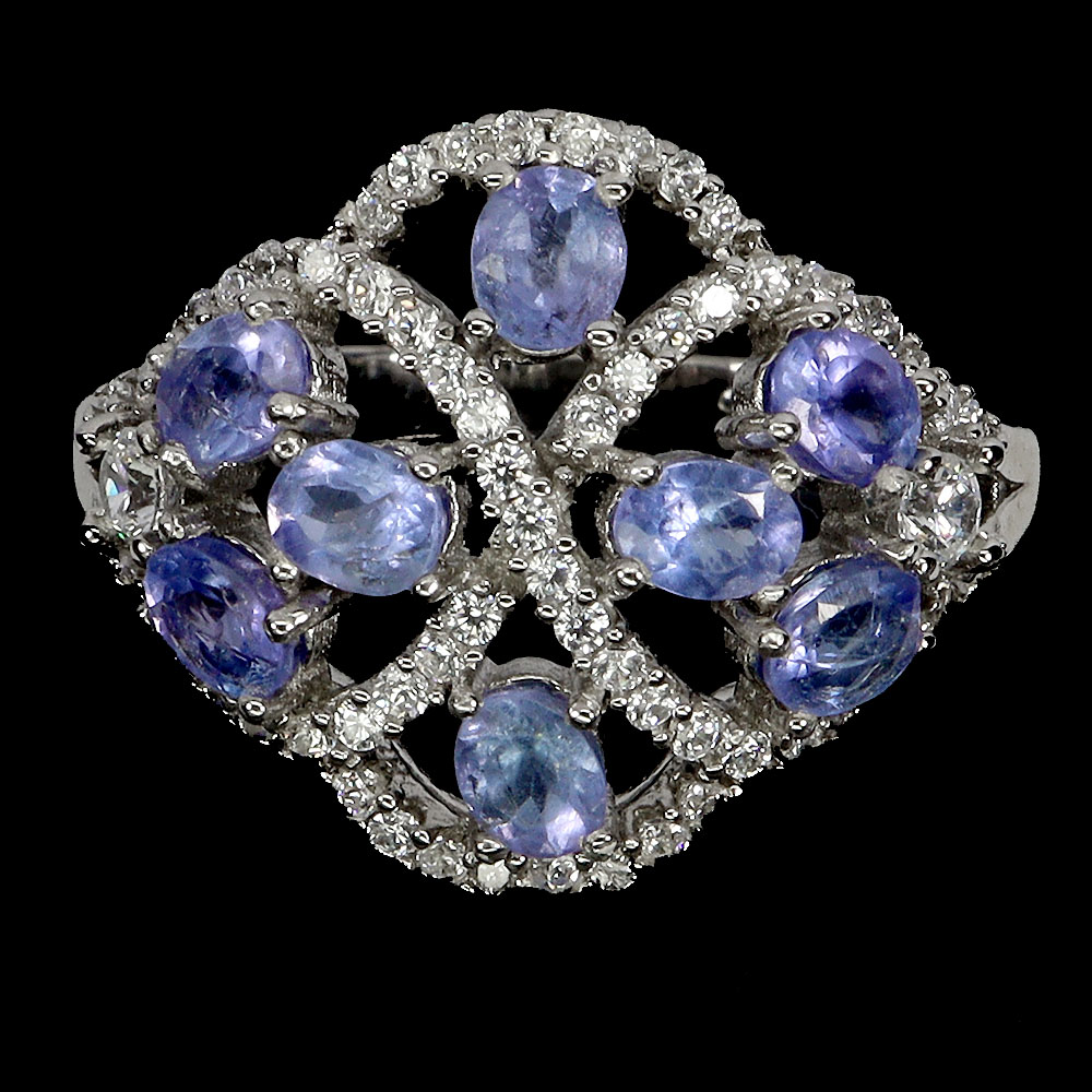 Unheated Oval Tanzanite 4x3mm 14K White Gold Plate 925 Sterling Silver Ring 9