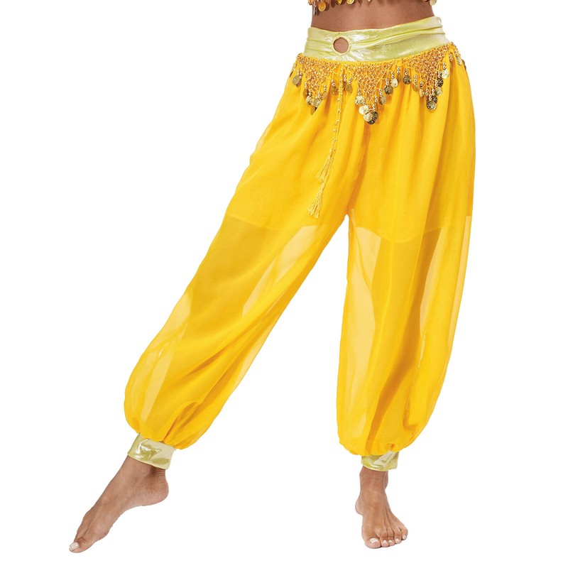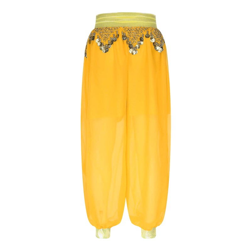Womens belly dance bloomers with decorative plastic beads tassels jingle and sparkle when moving.