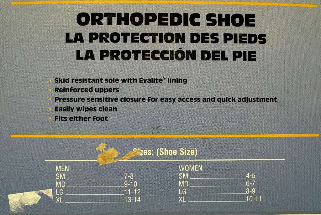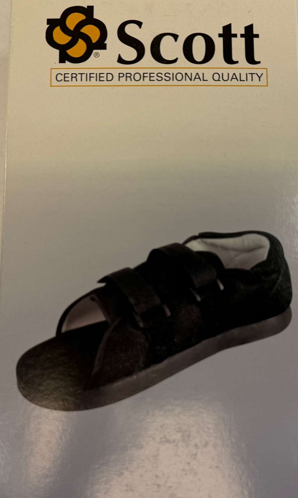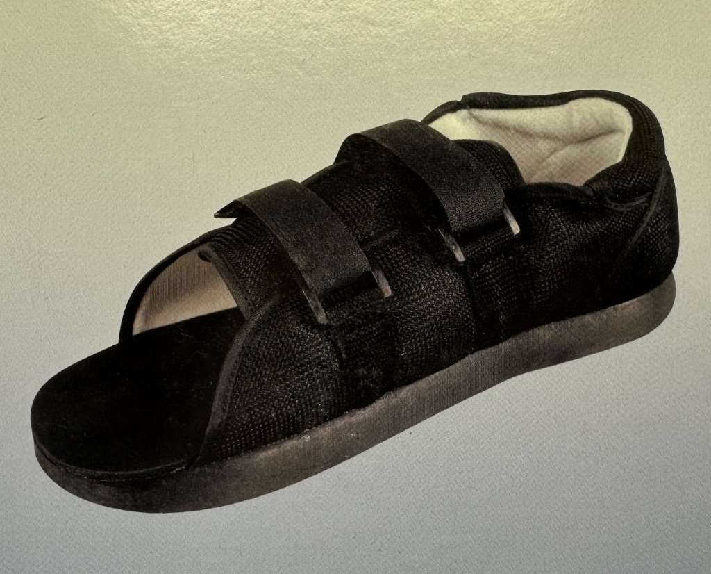 Post op shoes are worn to protect an injured foot, reduce swelling, and allow the wearer to walk short distances while the foot is healing.