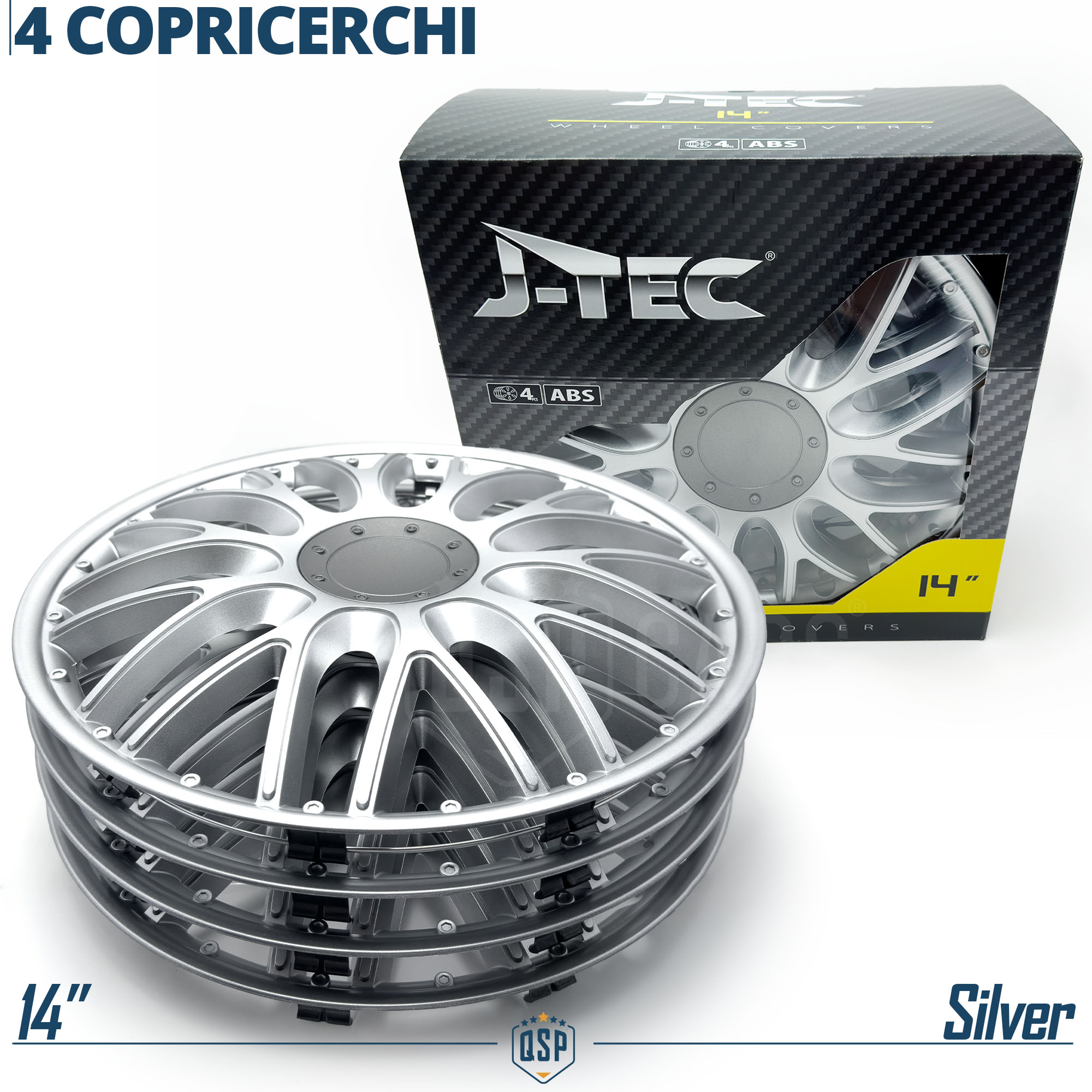 COPRICERCHI DA 14 POLLICI PER TOYOTA AYGO I | SILVER CON 10 RAZZE A Y | MADE IN EUROPE
