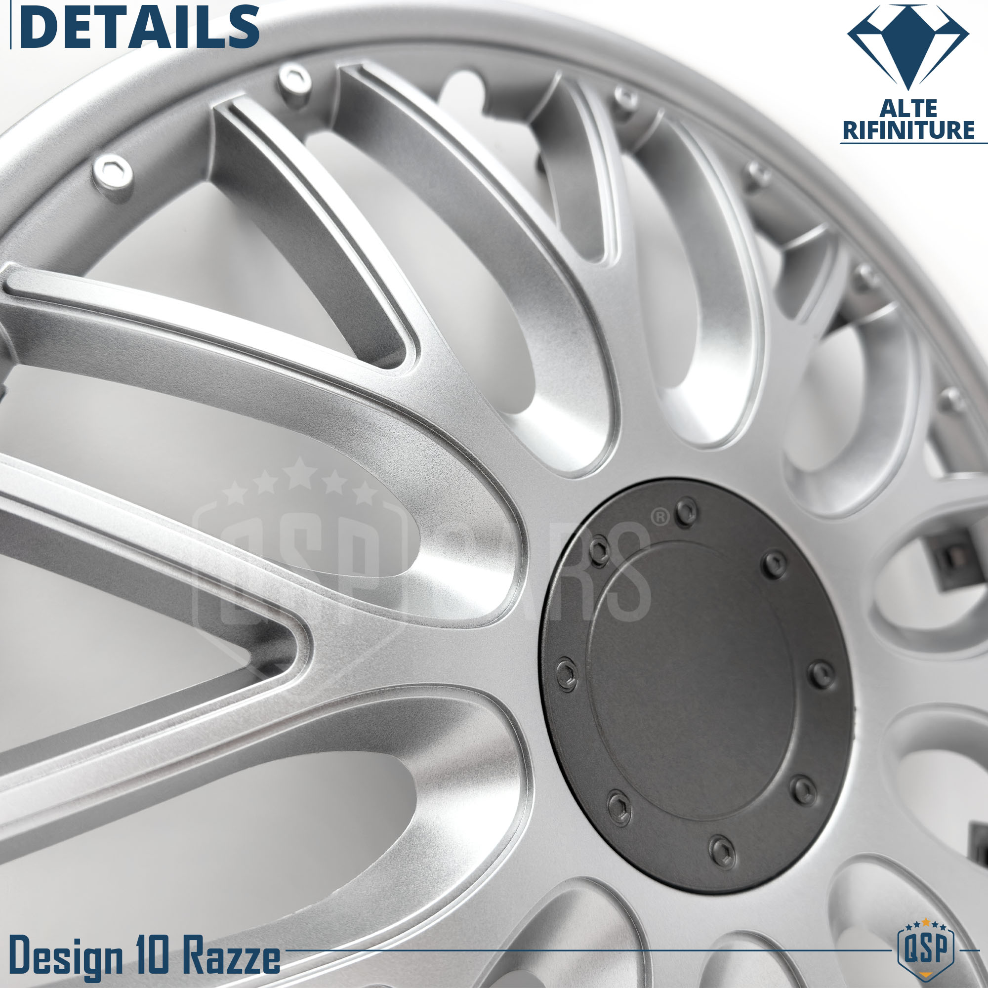 Design a 10 Razze a Y, Silver, sono Ispirati ai Cerchi in Lega Sportivi dei più importanti Brand Automobilistici; di qualità Eccellente nella scelta dei materiali, Rifiniture del Dettaglio, tatto, e colorazione.