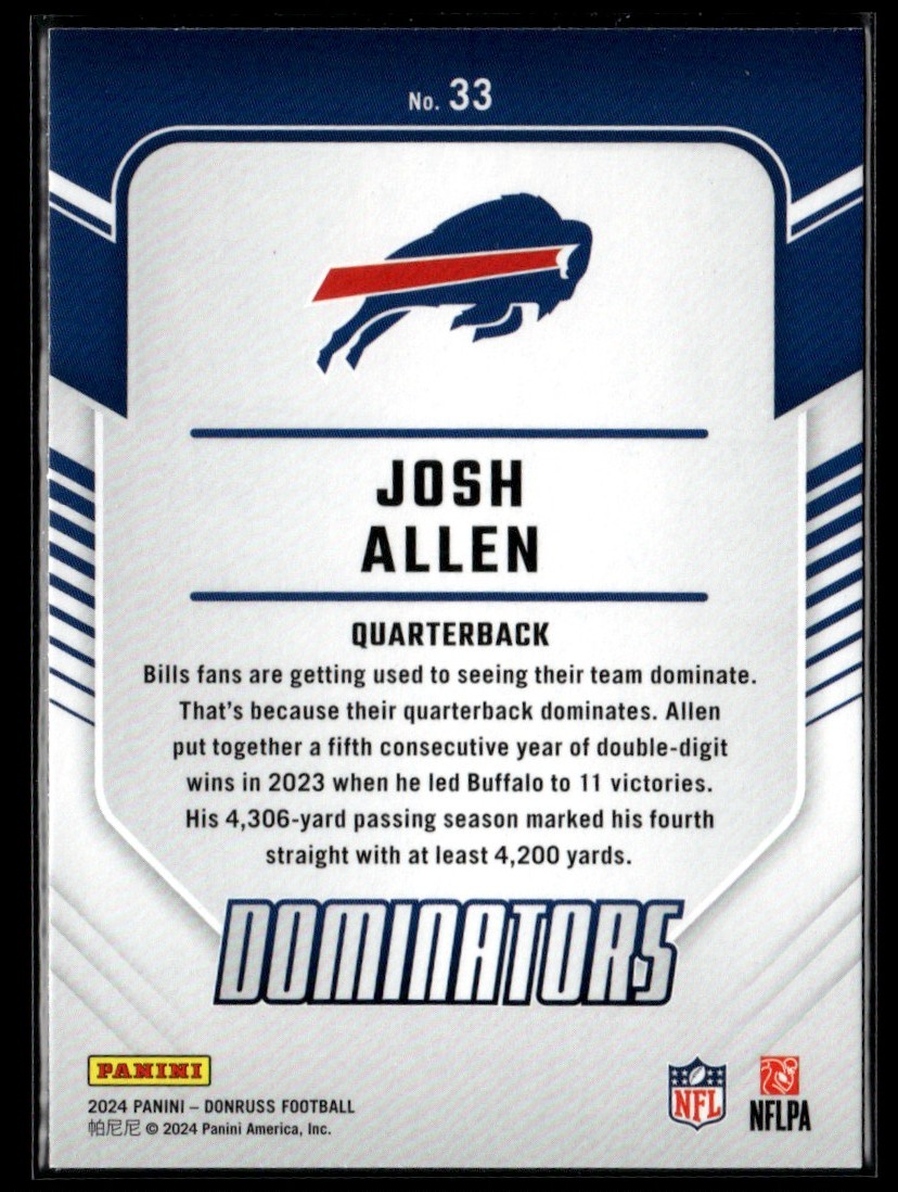 | 2024 Donruss Dominators Josh Allen Buffalo Bills #33 | ||||||||||||||||||
