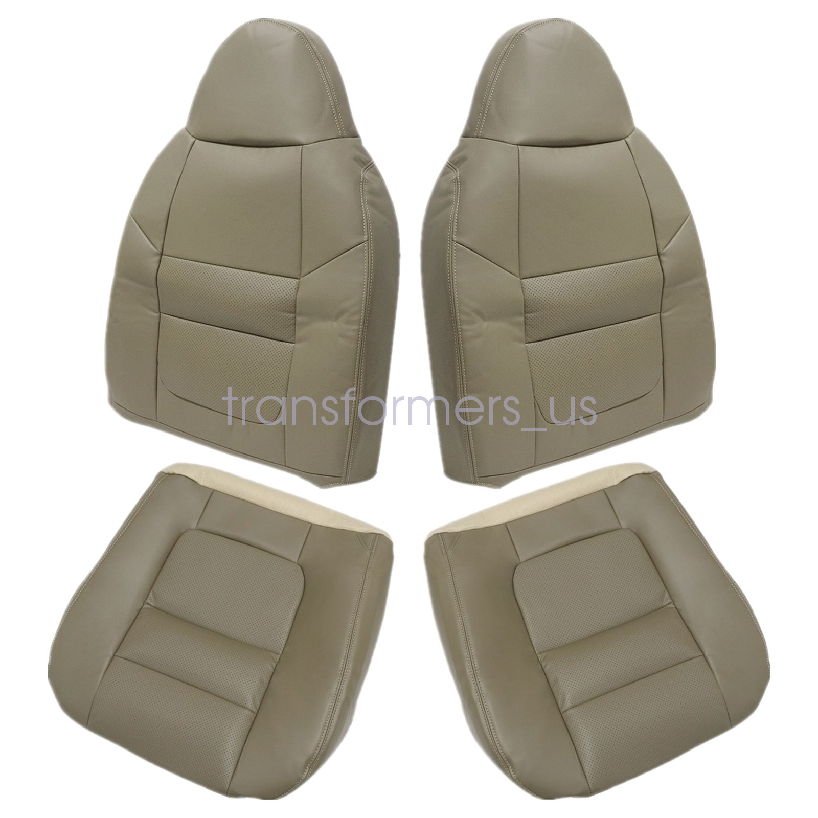 For 2001 Ford F250 F350 Lariat Driver / Passenger Bottom / Top Replacement Leather Seat Cover Med Parchment Tan