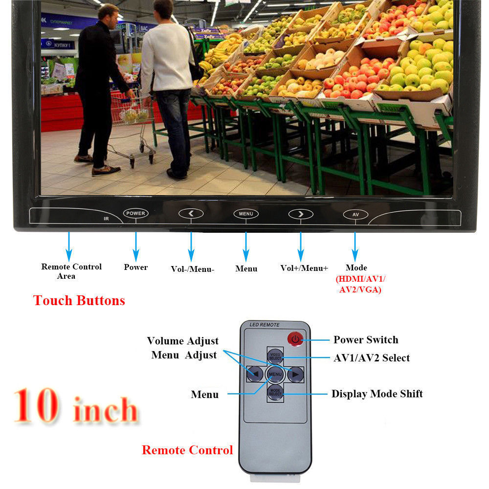 1.【Mini & Portable】 10.1" LCD monitor is designed tiny and light, you can even carry it in your handbag.