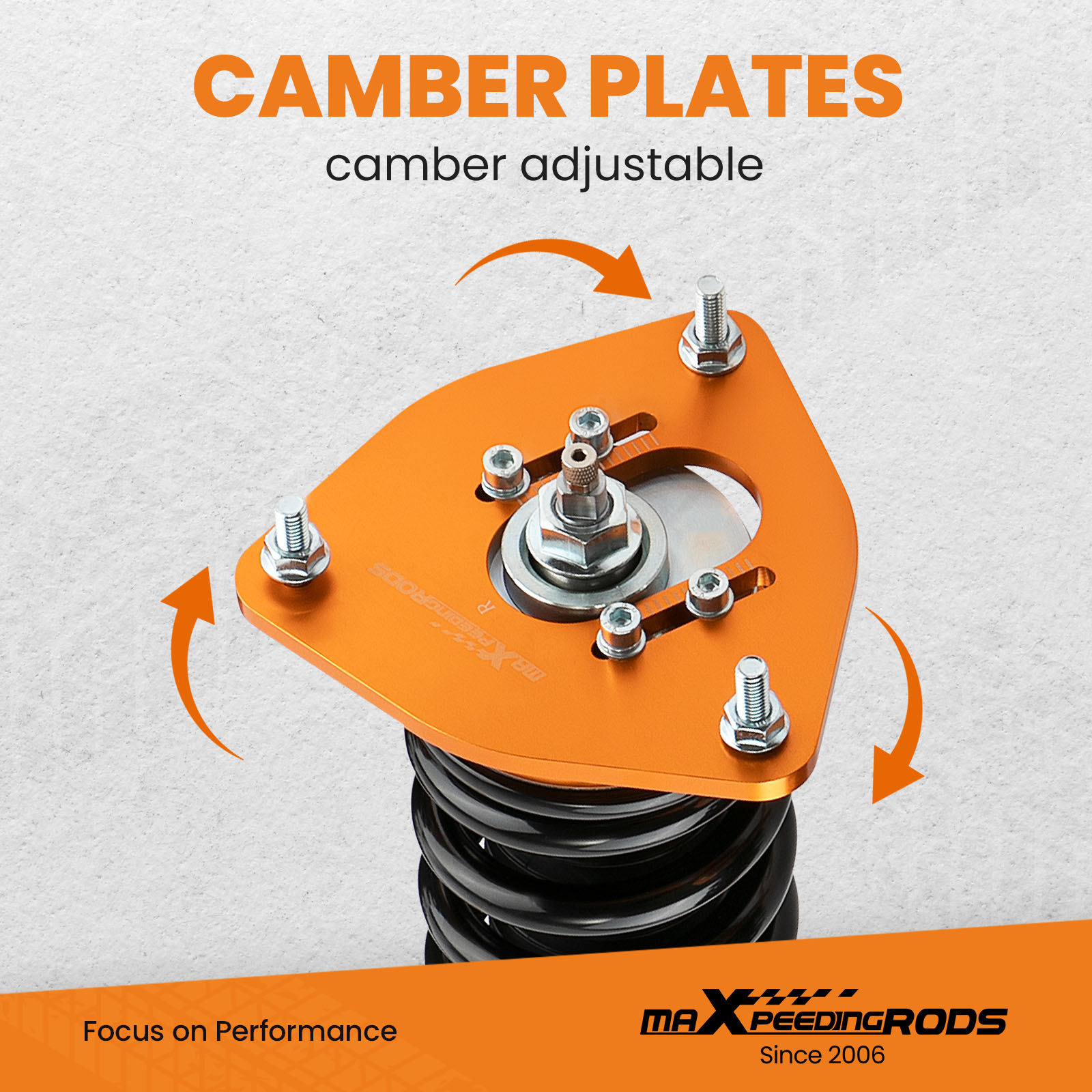 - Camber plate top mounts help to eliminate the need for a separate camber kit.