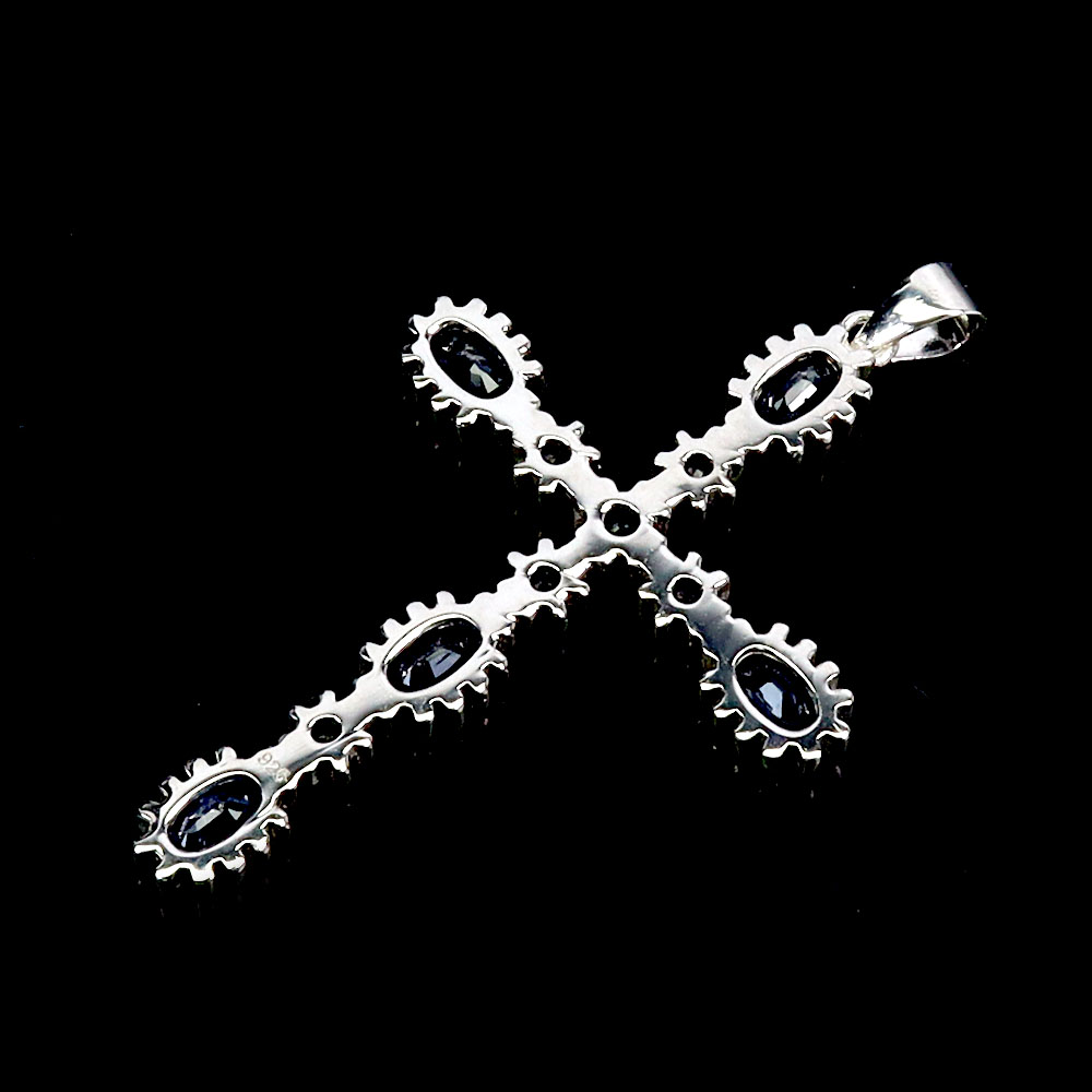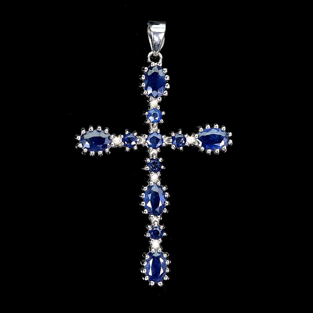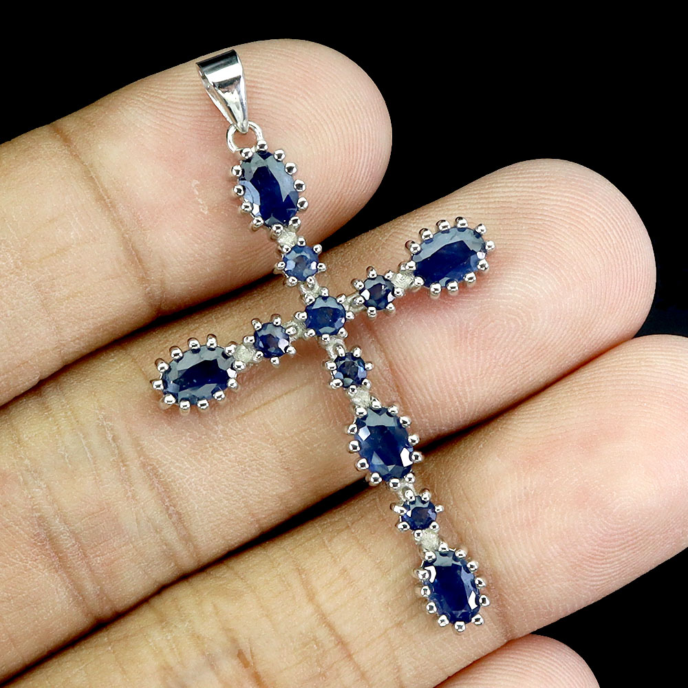 925 Sterling Silver Pendant Oval Blue Sapphire 6x4mm Gemstone Cross Jewelry