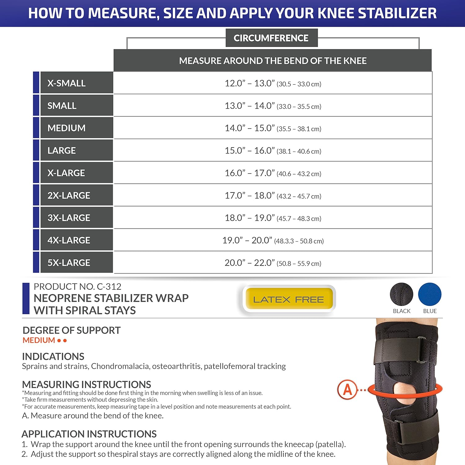 Opens flat for easy application over tender knees.